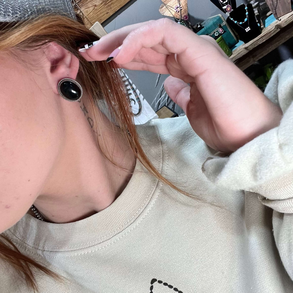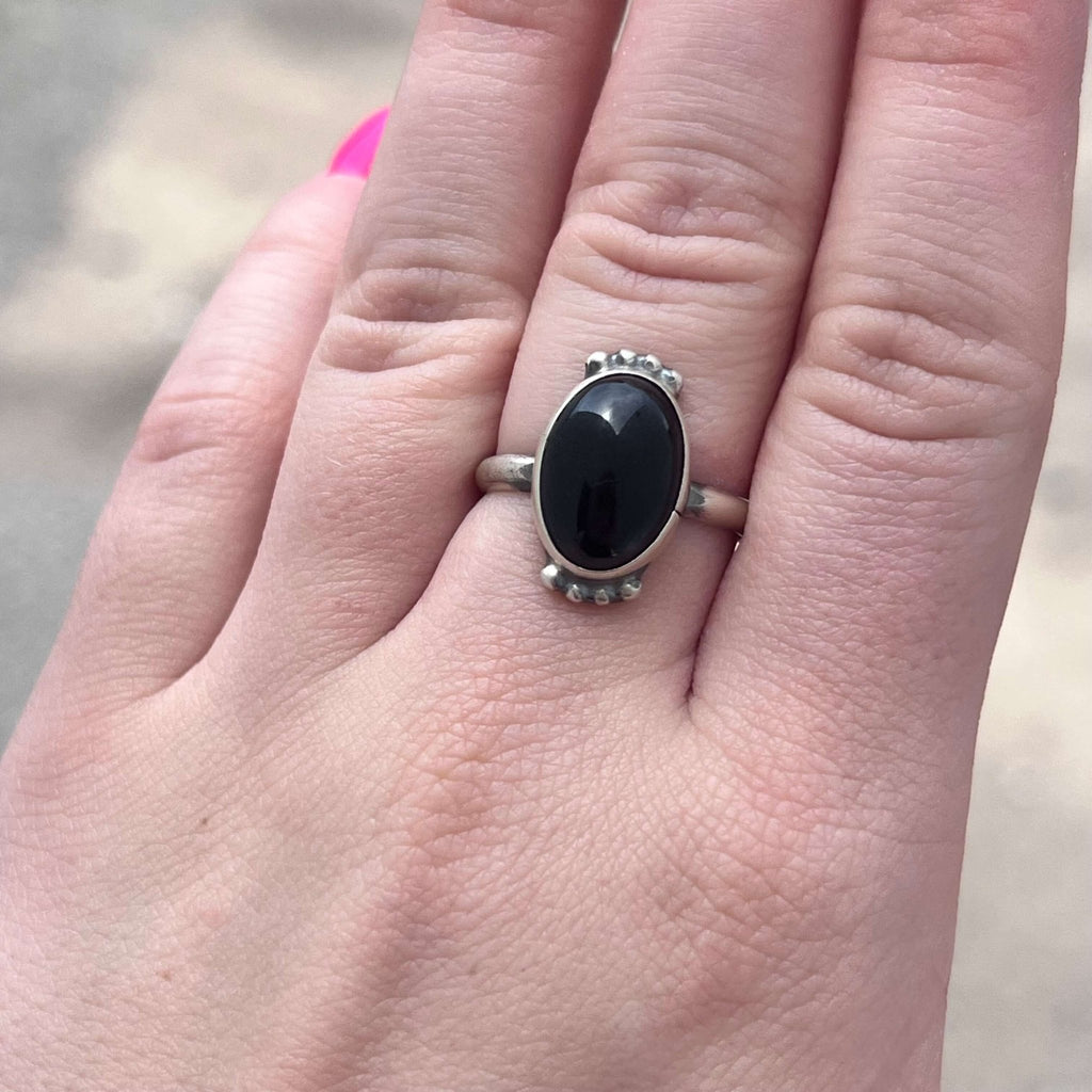 Oval Black Onyx with Ball Detail Sterling Silver Ring