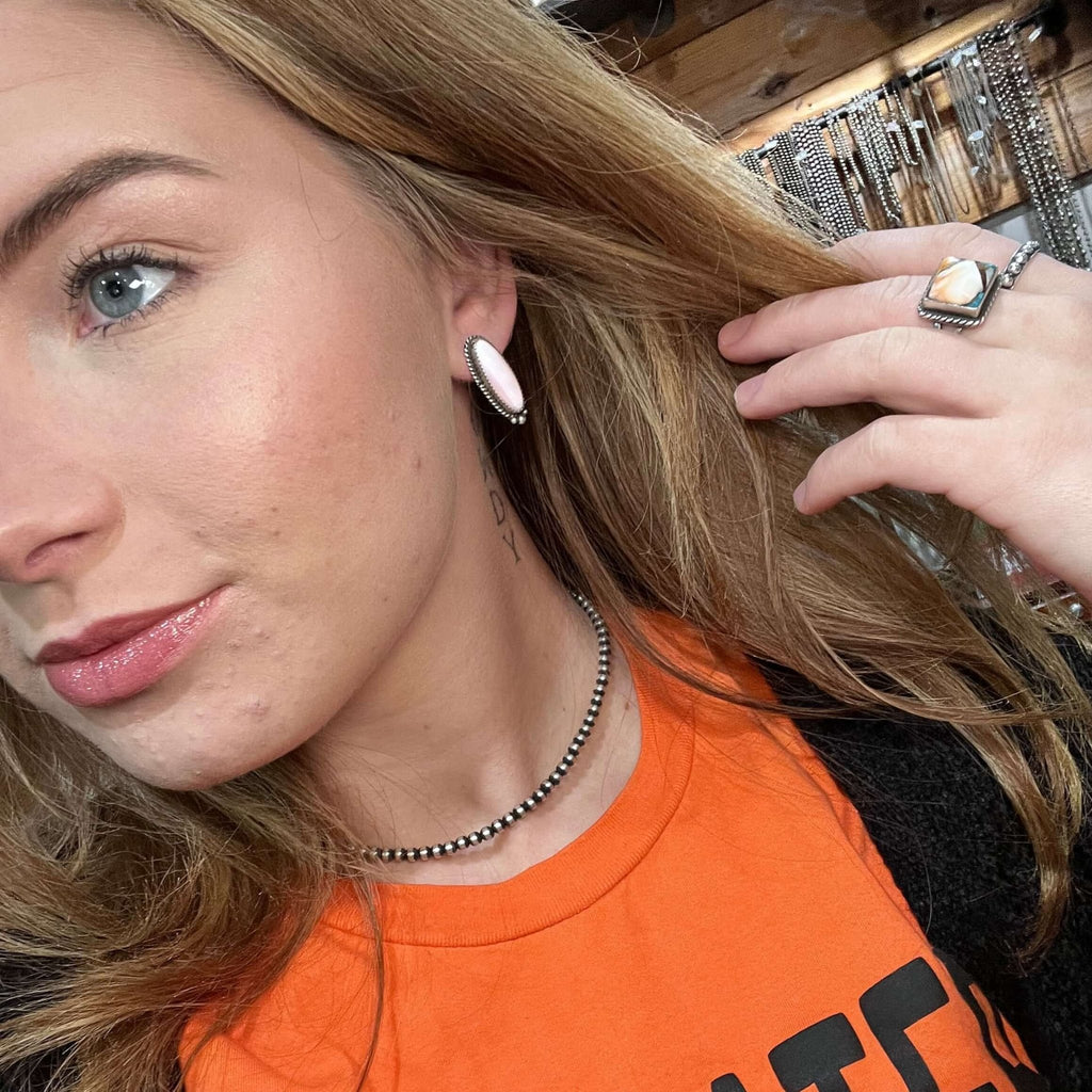 Pink Conch Jaw Claw with Multi sized Navajo Pearl Statement Necklace