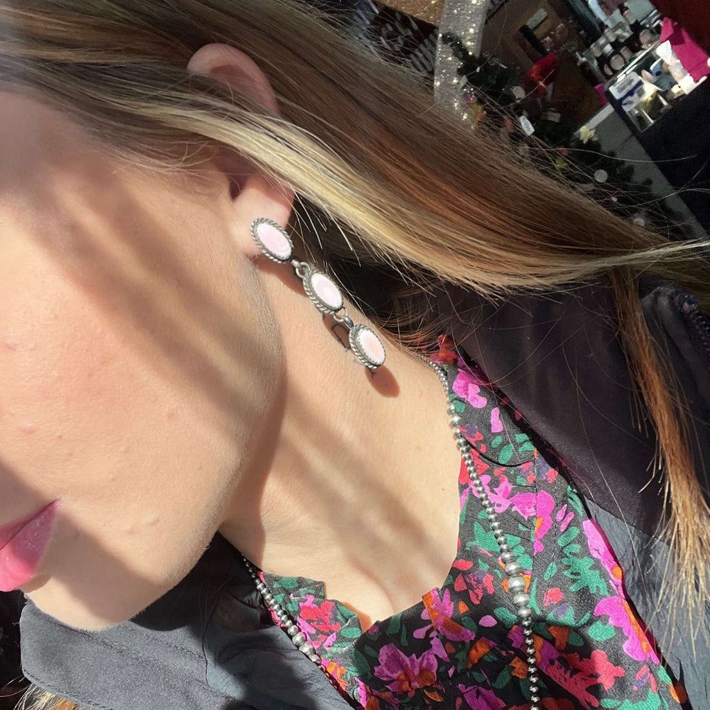 3 Stone Drop Pink Conch Post Sterling Silver Earring