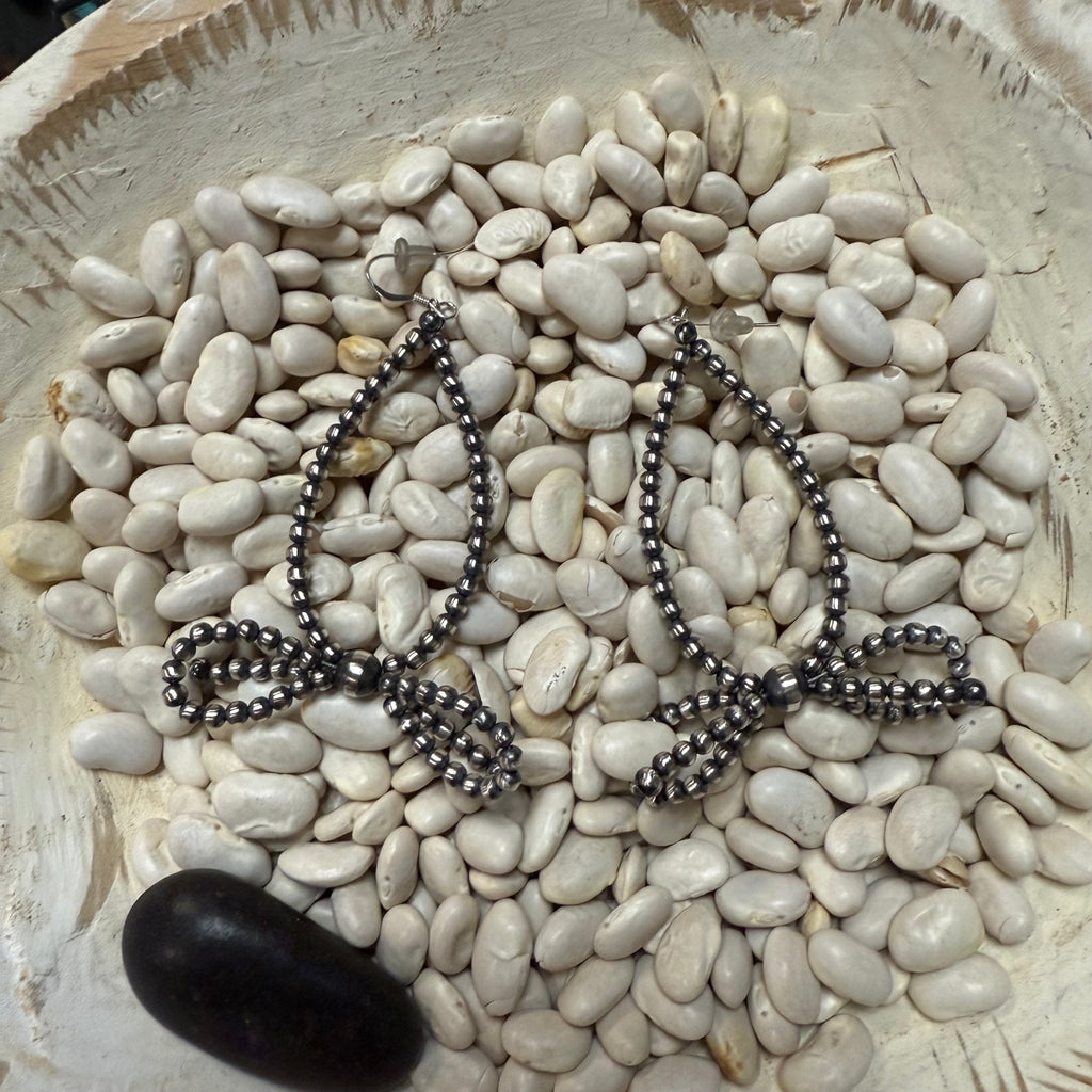 3mm Bow Navajo Pearl Round Dangle French Hook Sterling Silver Earring