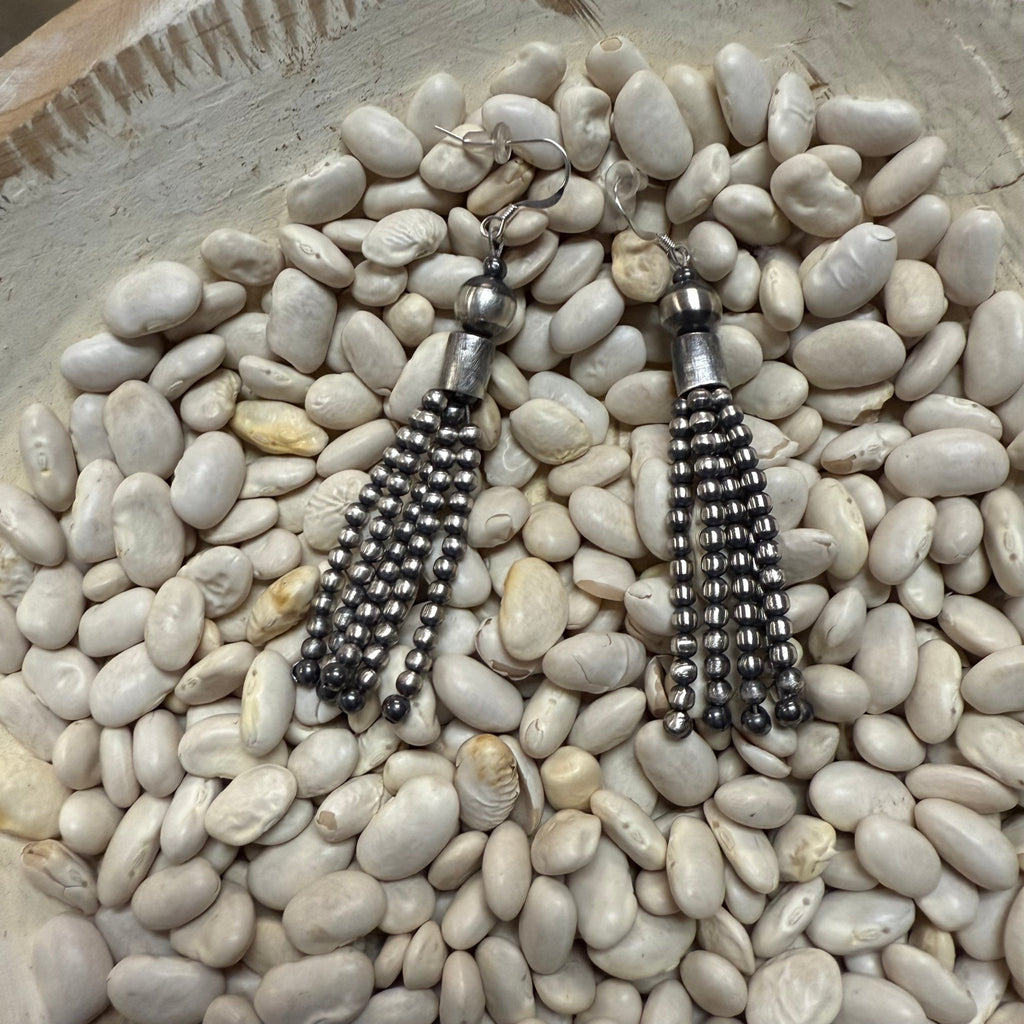 3mm Tassel w/ 8mm 2.5 Inch Dangle French Hook Sterling Silver Earring