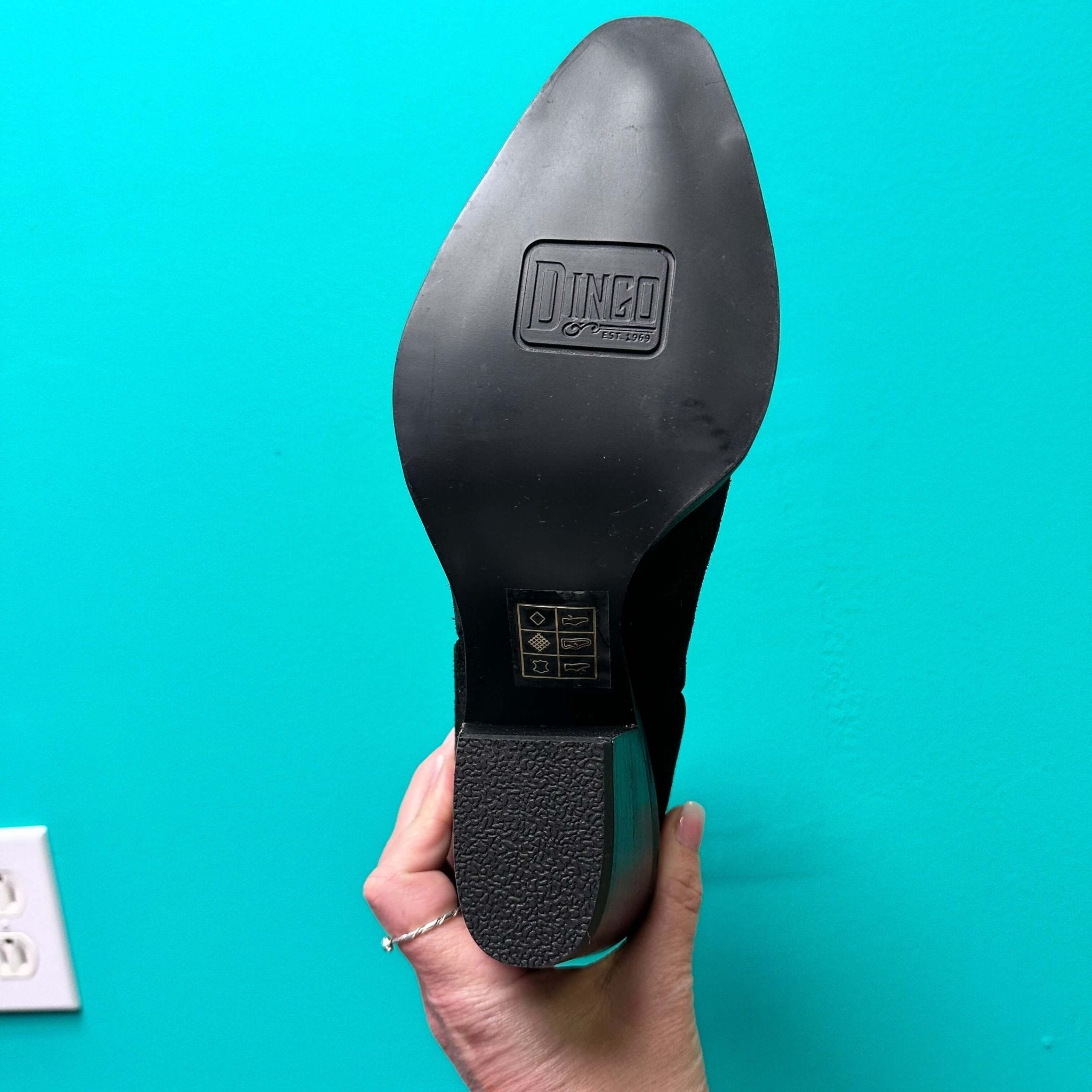Foot: Suede Leather, Shaft Height: 7", Circumference: 12", Heel Height: 2 3/4", Insole: Cushion Comfort Insole, Toe Shape: Narrow, Outsole: Rubber