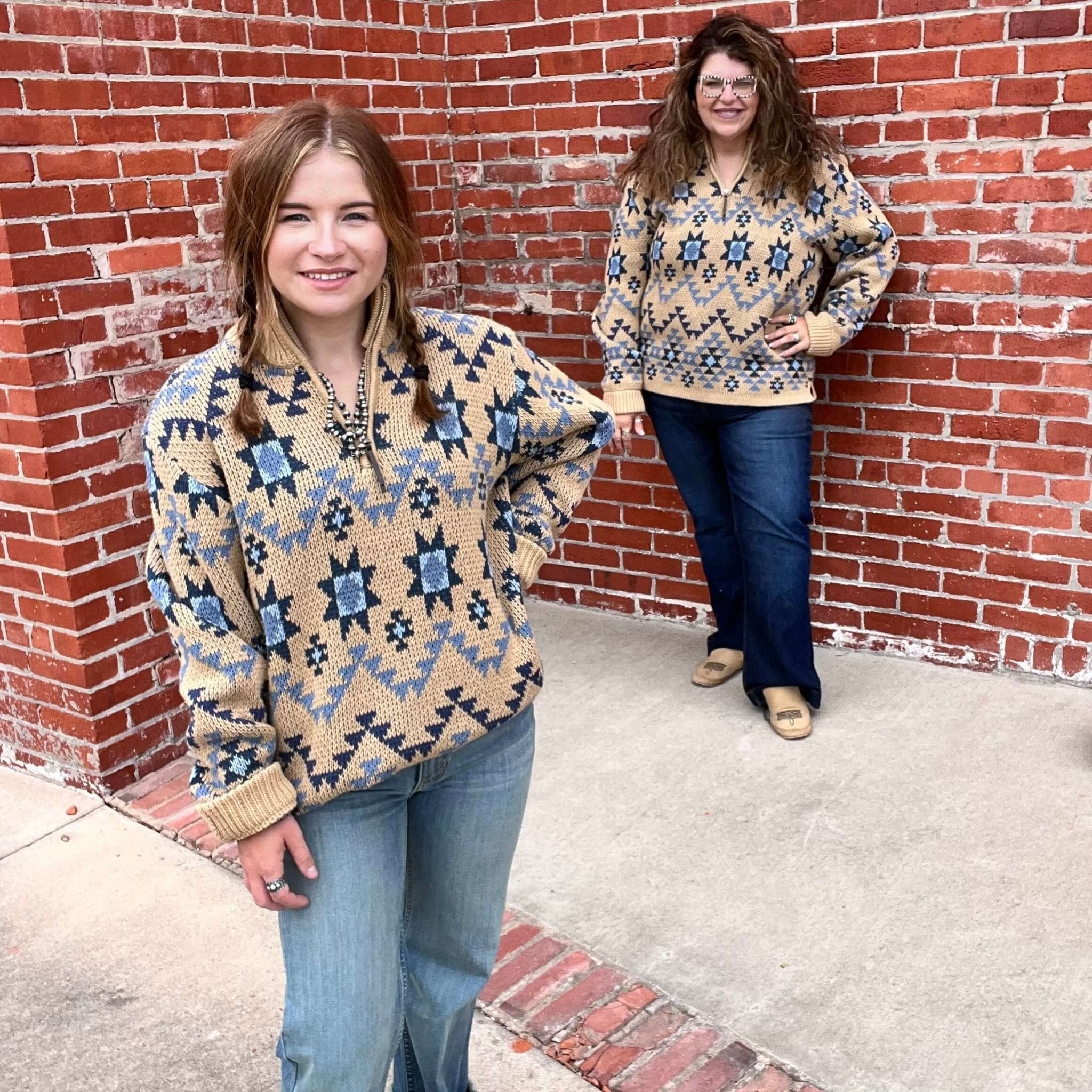 Blue Aztec Men’s Rowan Pullover Zip Tasha Polizzi