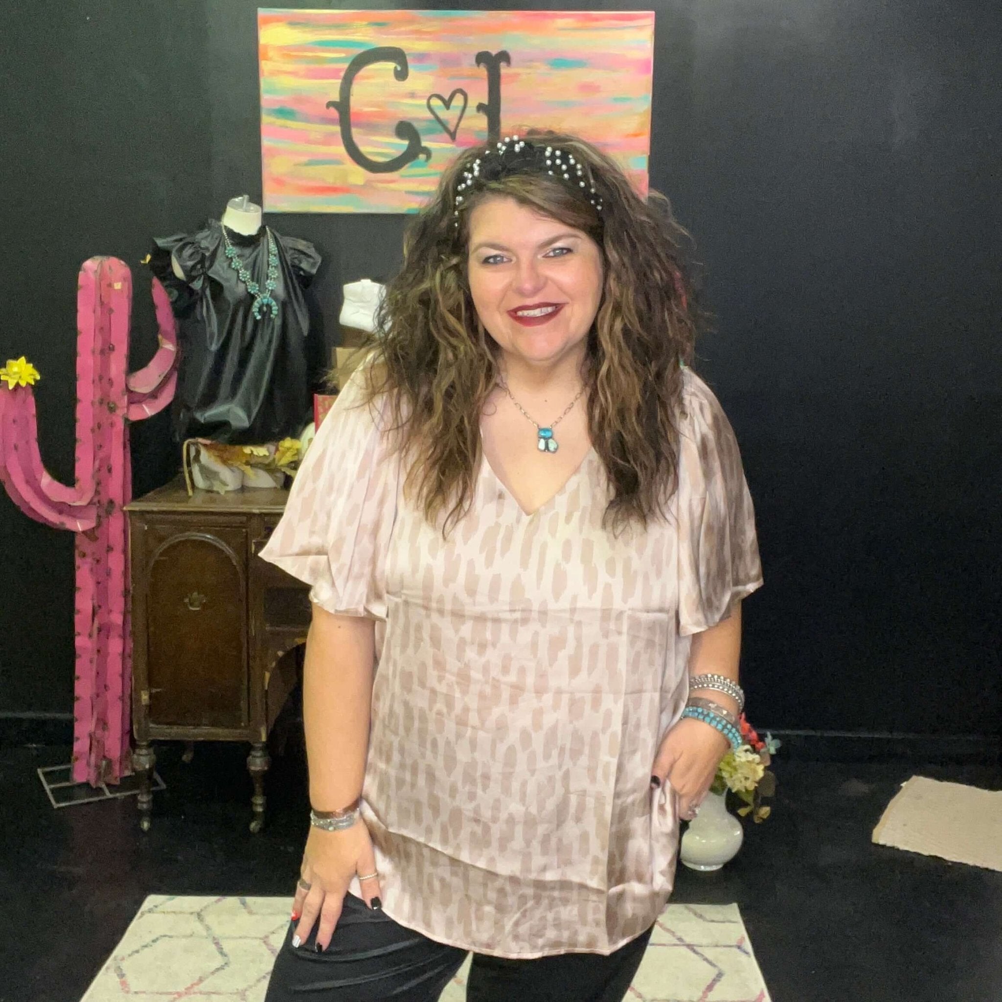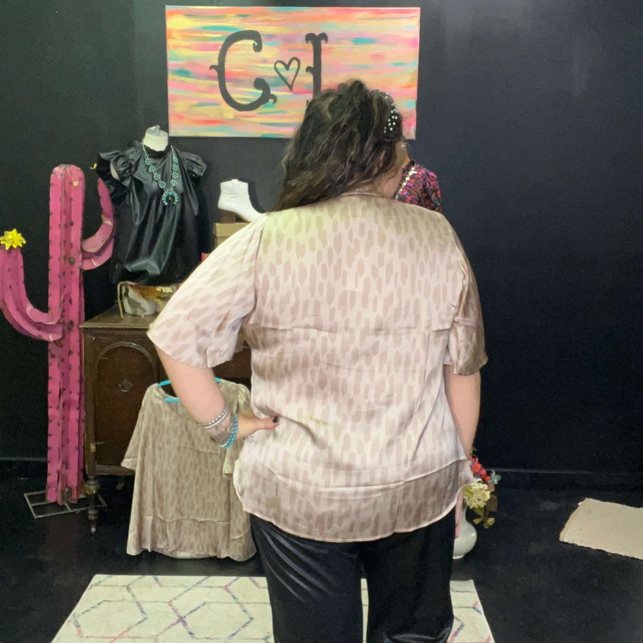 Champagne Tan Printed Bubble Shoulder Top size XXXL