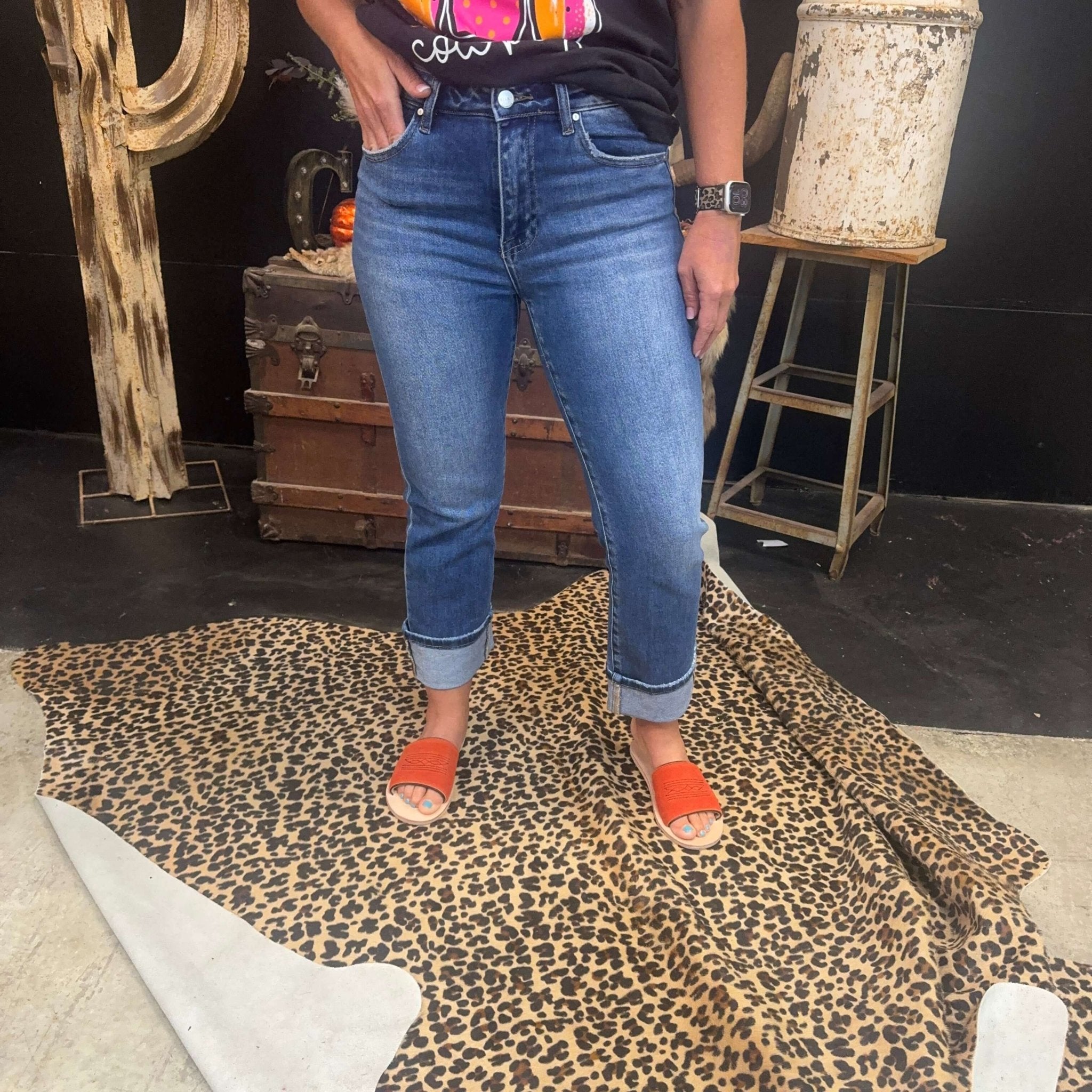 Medium Wash No Hole Risen Straight Cuffed Perfect Jeans