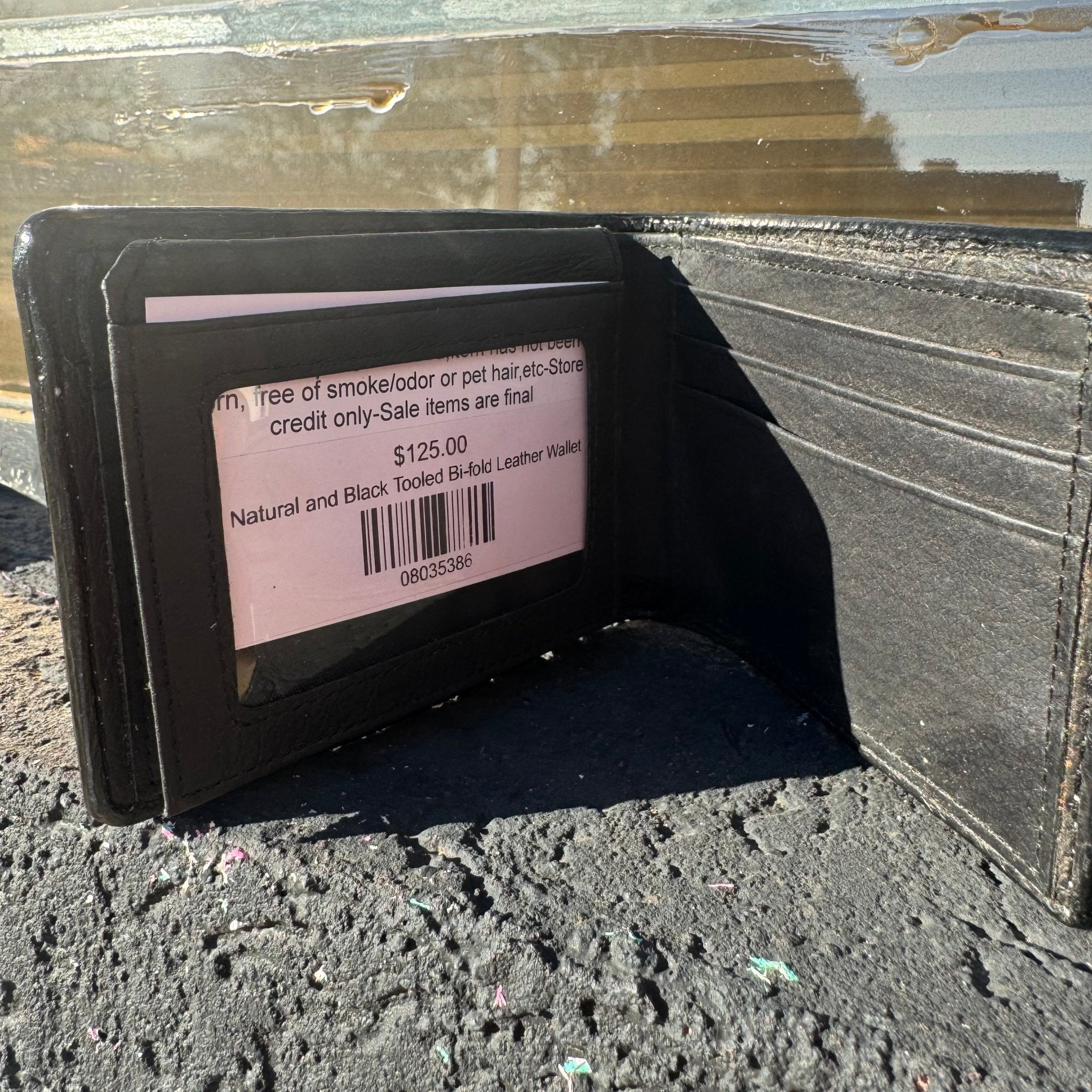 Natural and Black Tooled Bi-fold Leather Wallet