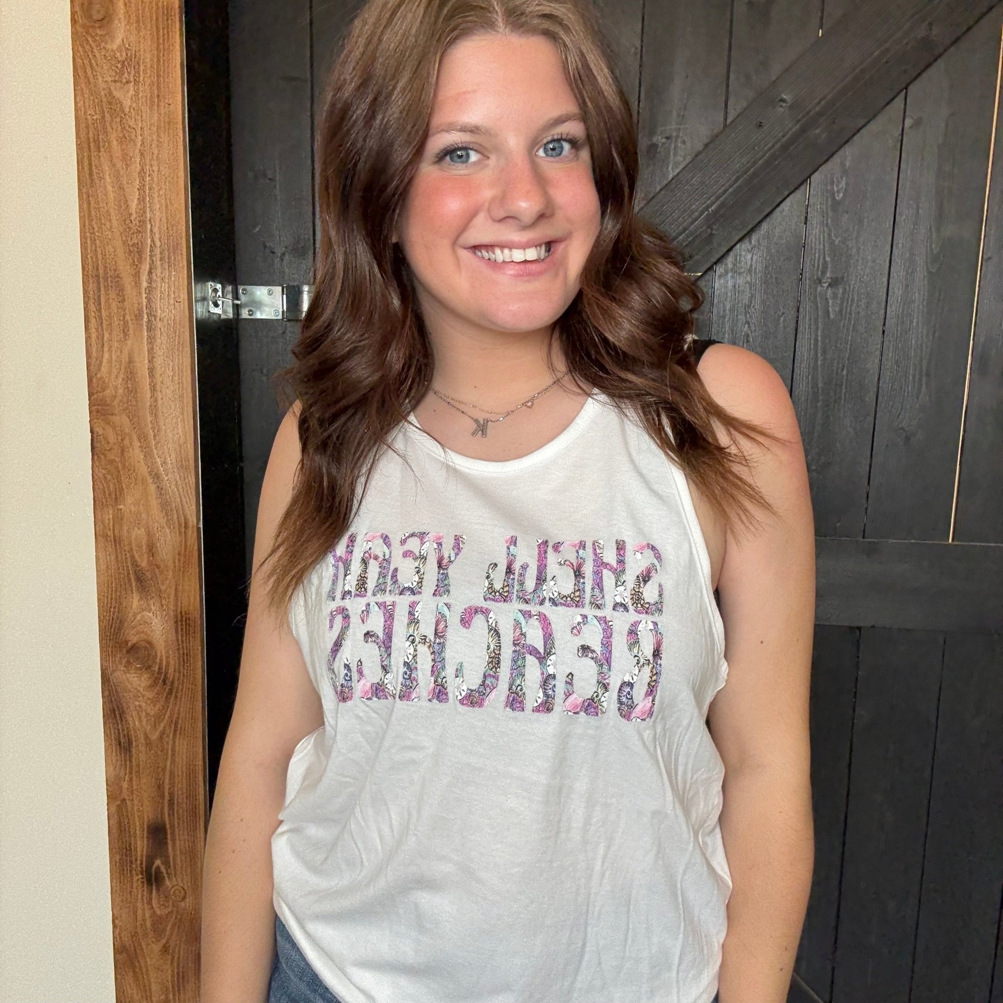 Shell Yeah Beaches White Tank Top size Large