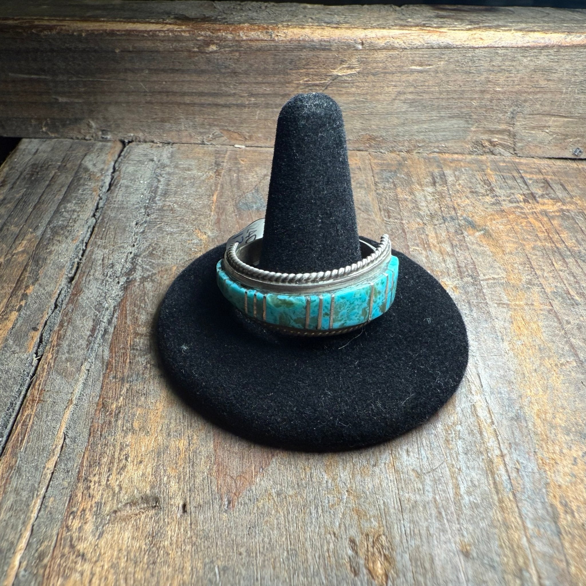 Zuni Inlay Graduated Turquoise Sterling Silver Ring / Size 13.5