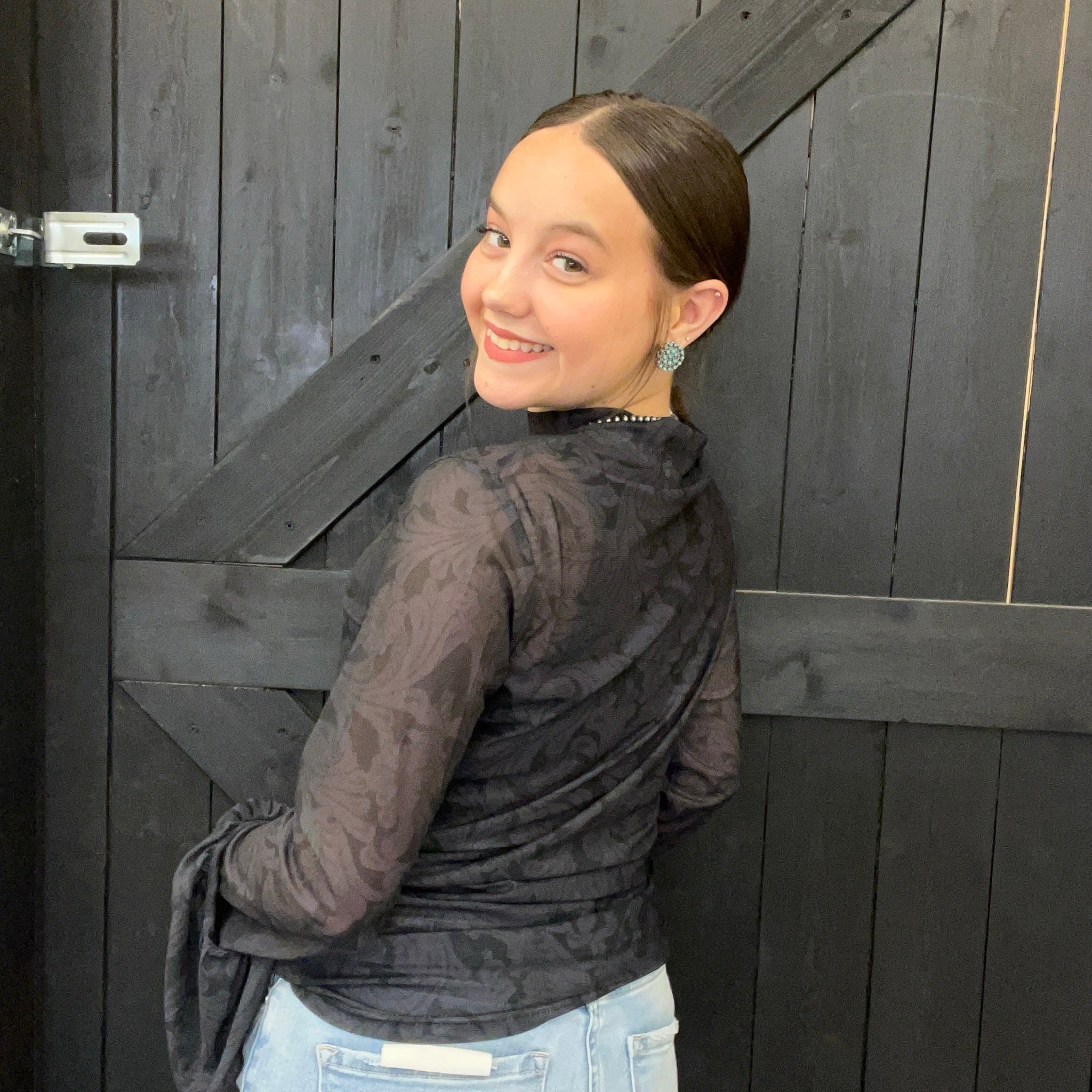 Tooled In Black With Ruffle Sleeve Mesh Long sleeve Top size x-large