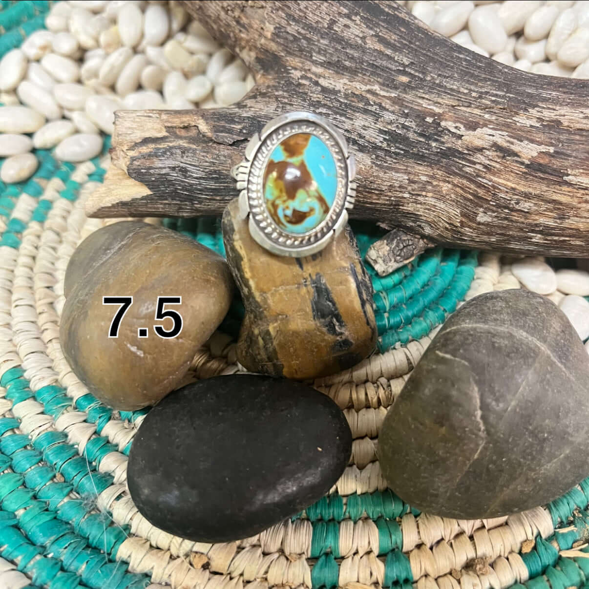Turquoise Oval Stone Sterling Silver Ring W/ Sterling Detail size 7.5