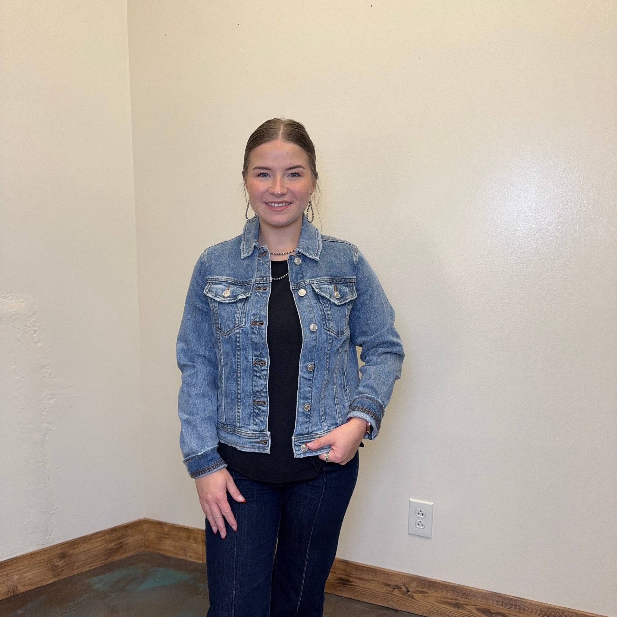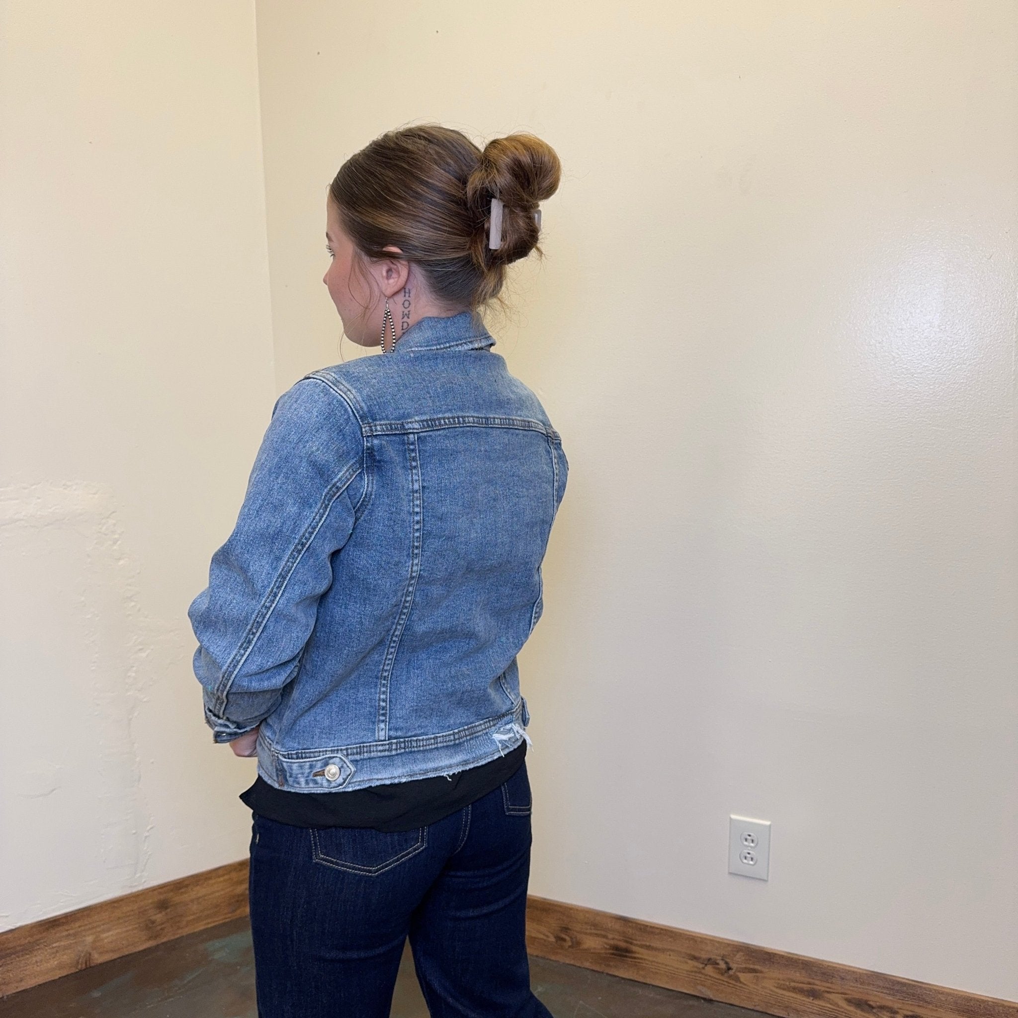The Medium Wash Raw Denim Fitted Short Jacket is your go-to outerwear piece that effortlessly blends style with function. Its medium wash denim makes it easy to pair with various outfits, from casual tees to chic dresses. The short length is flattering and allows for easy movement, making this jacket a wardrobe essential no matter the season.