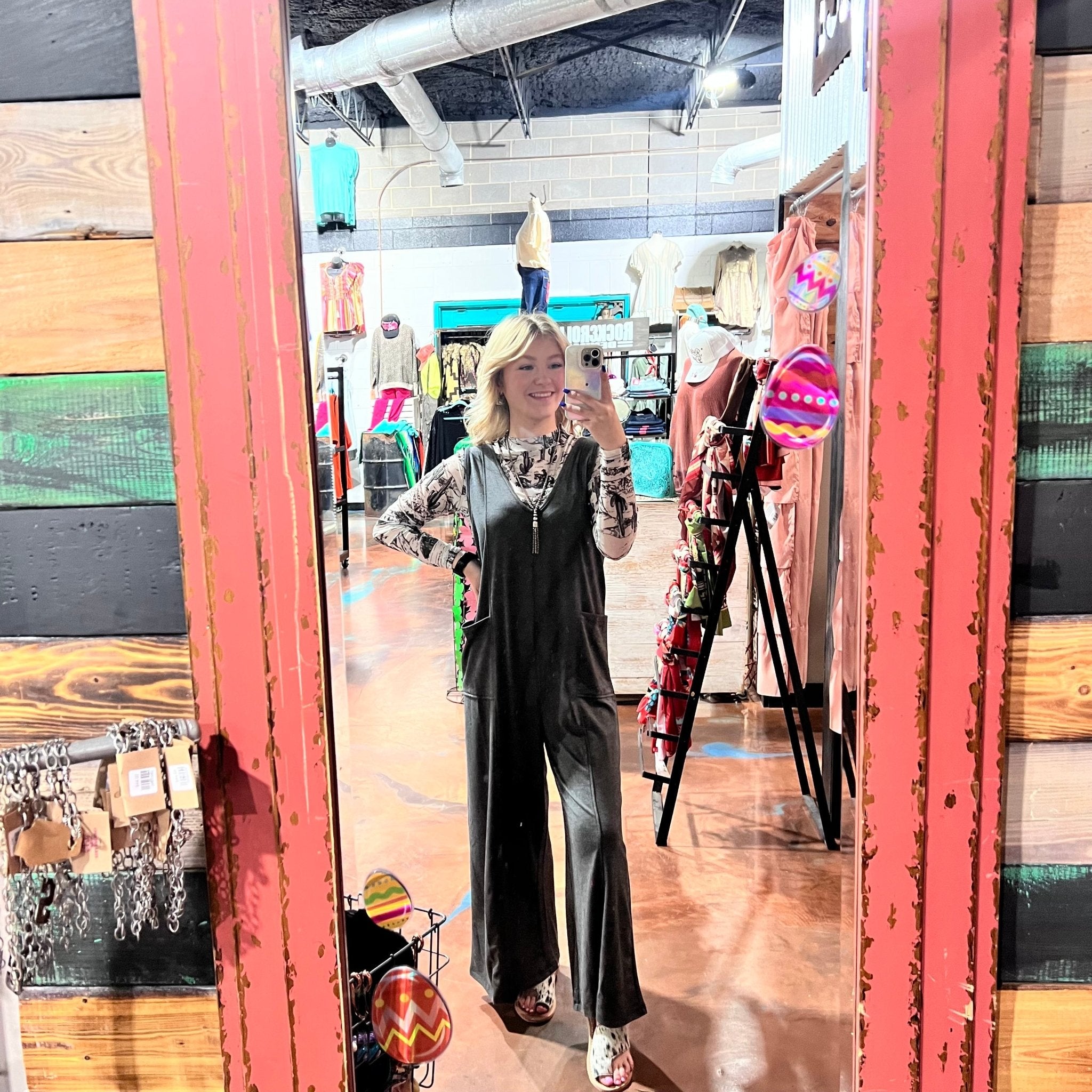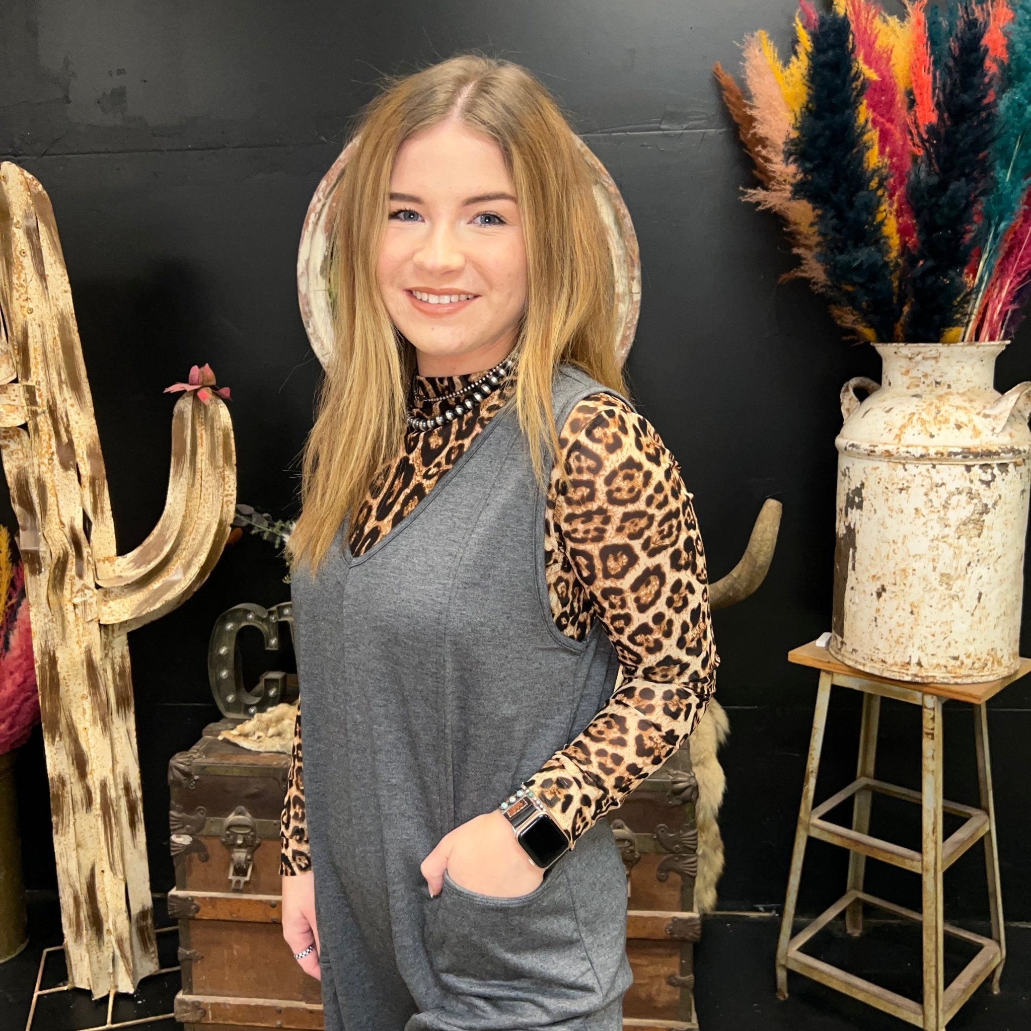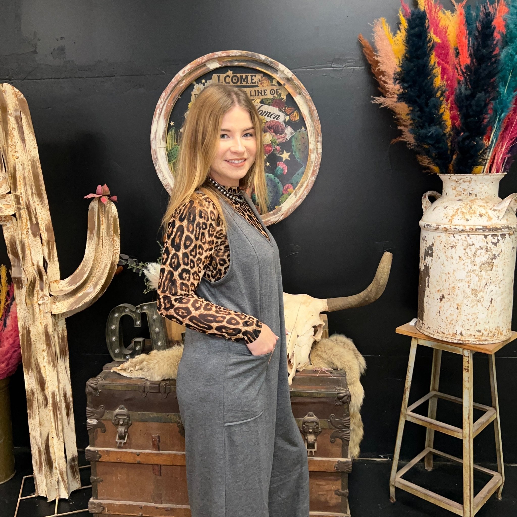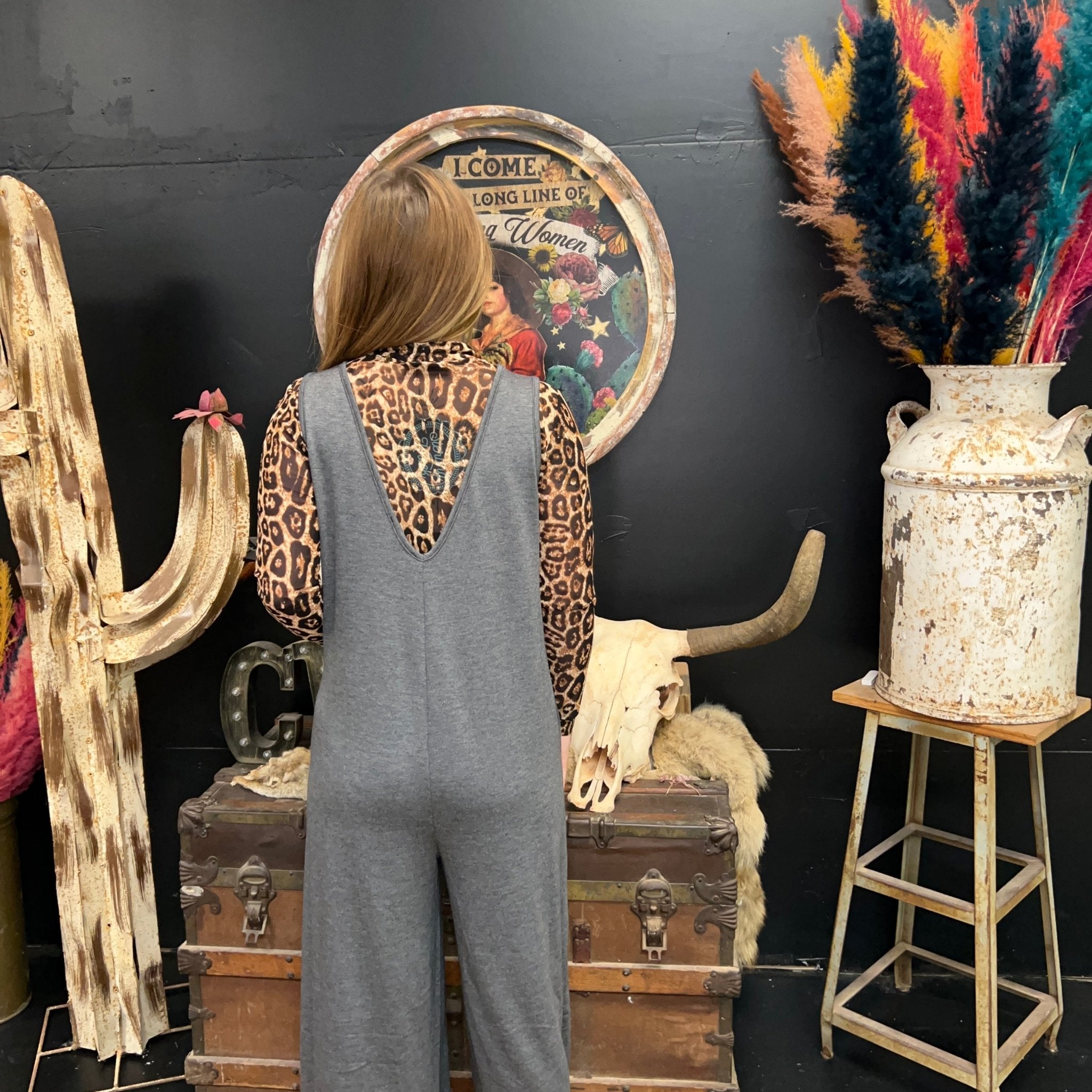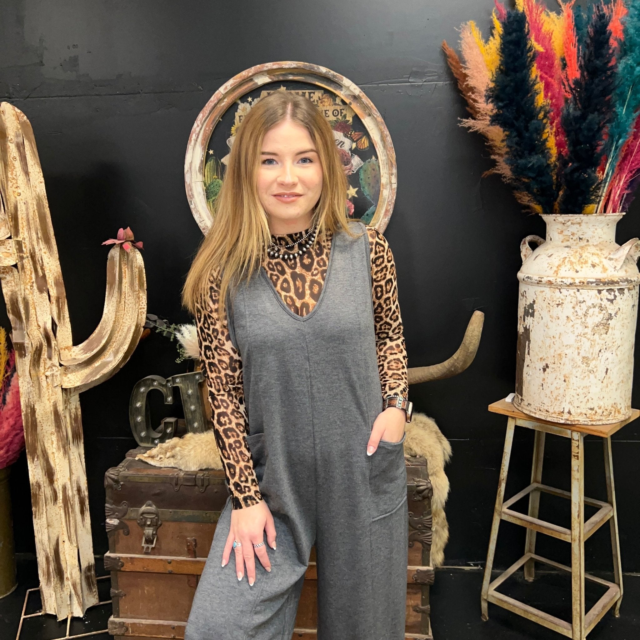 Charcoal Gray Sleeveless Romper Jumpsuit w/ Pockets