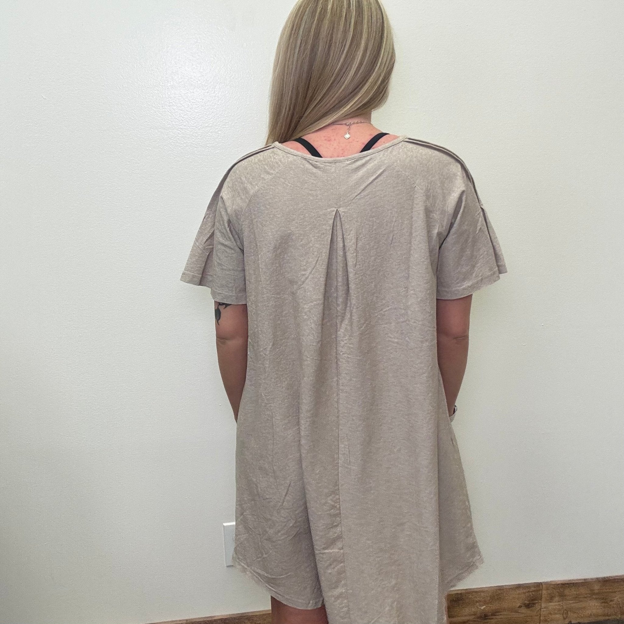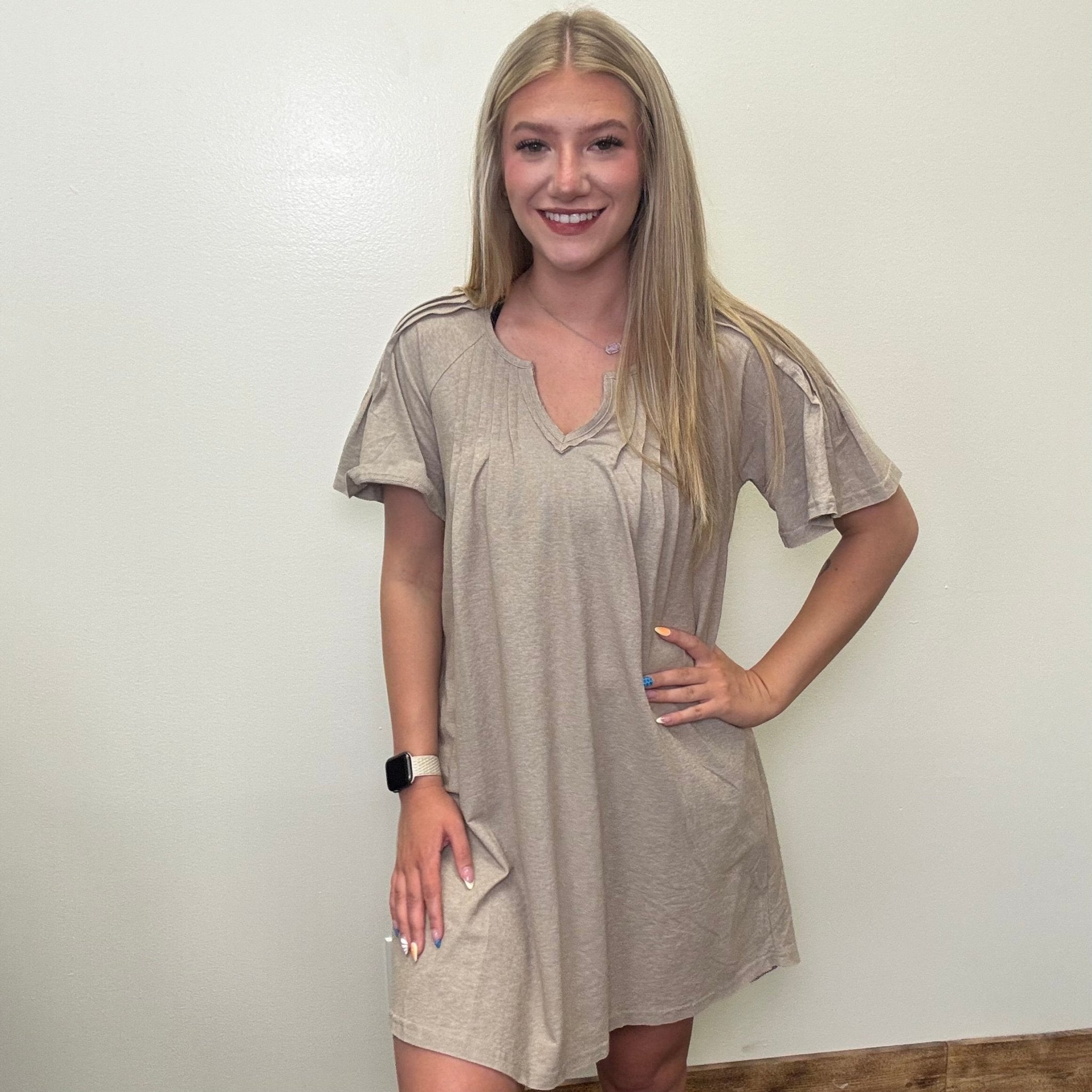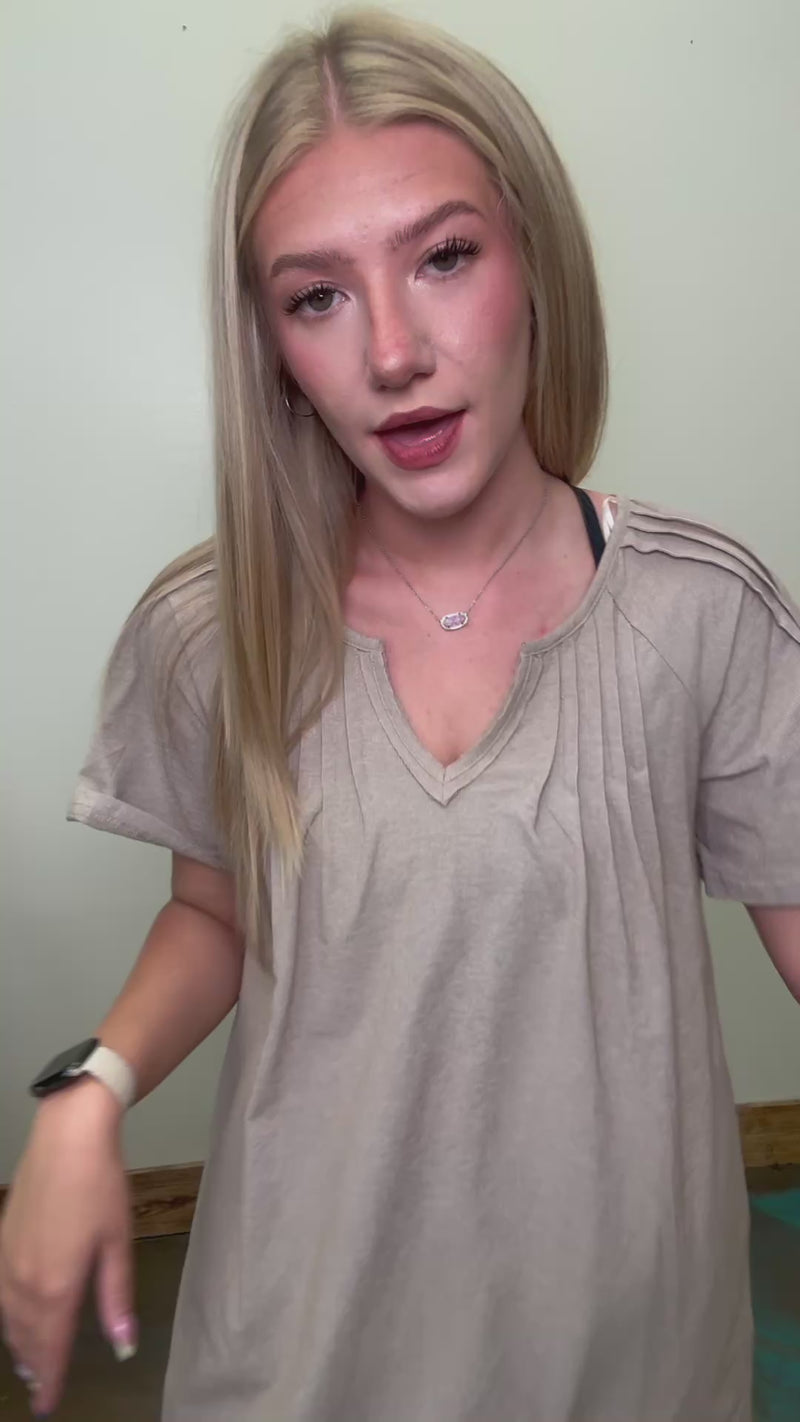 Soft Oatmeal V Neck Detailed Short Dress