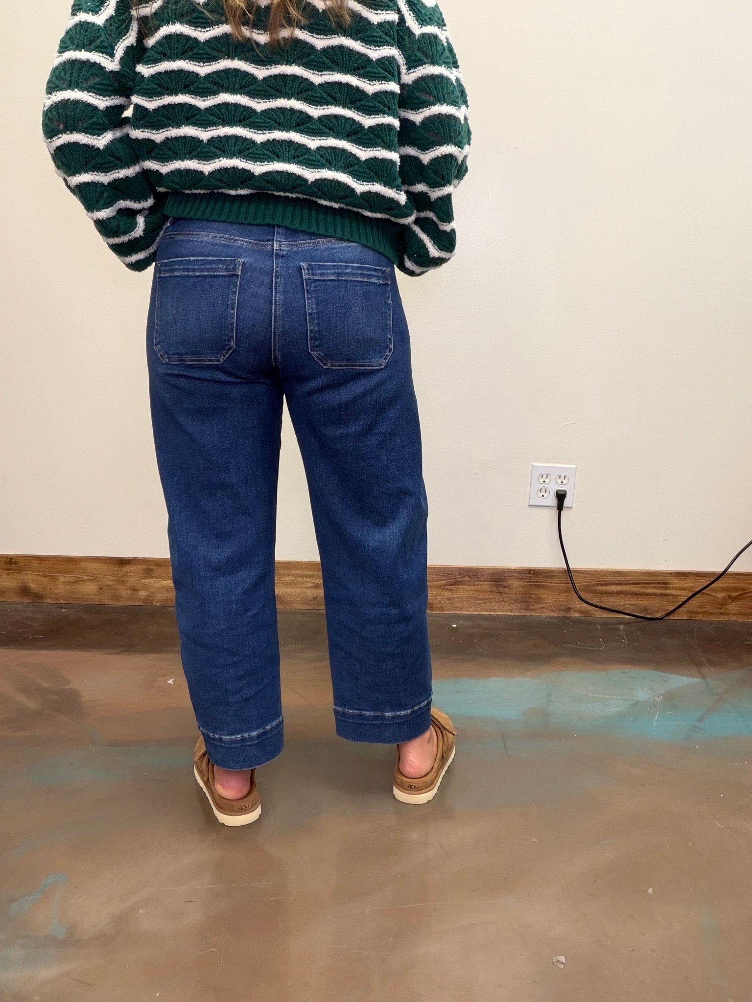 Dark Mid Rise Cropped Relaxed Barrel Risen Jeans