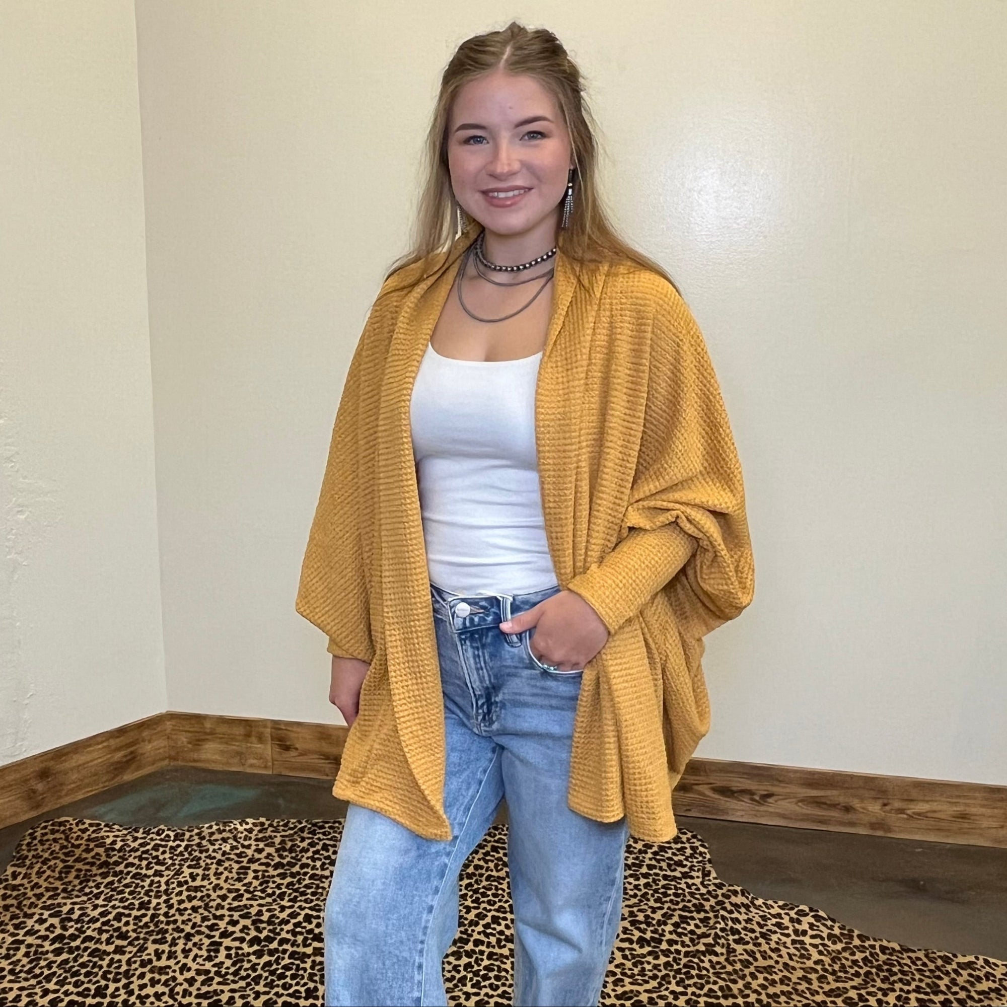 Waffle Mustard Yellow Long Sleeve Dolman Cardigan