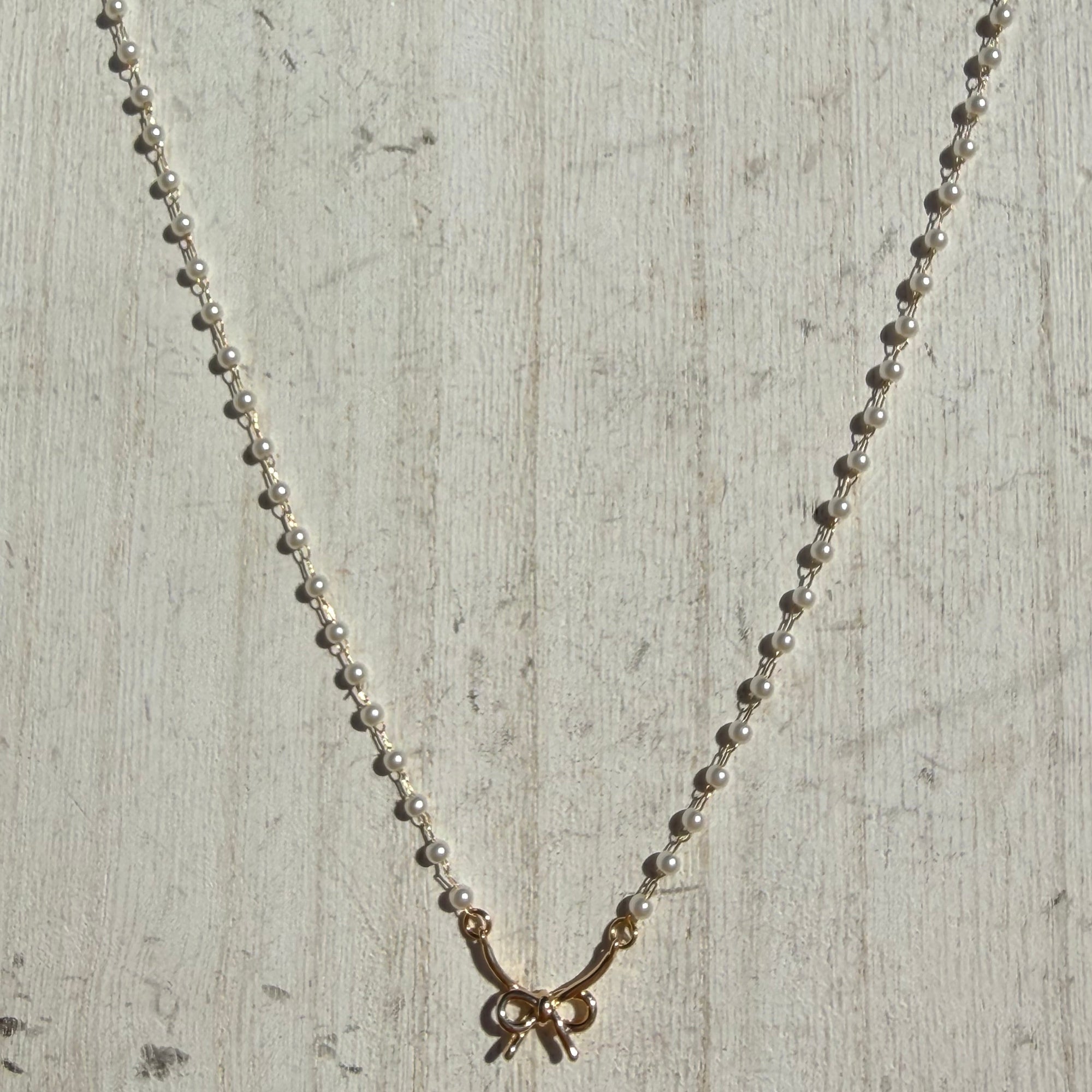 Dainty White Pearl with Gold Bow Fashion Necklace