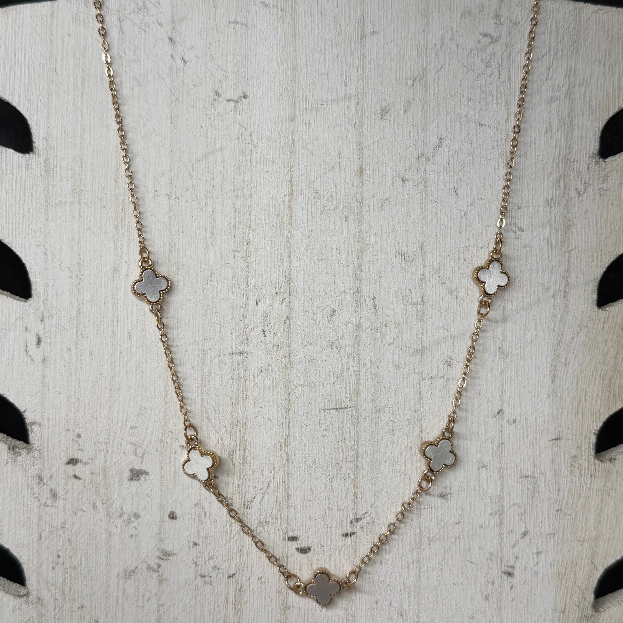 Gold Chain Link & Silver Detail Patterned Fashion Necklace