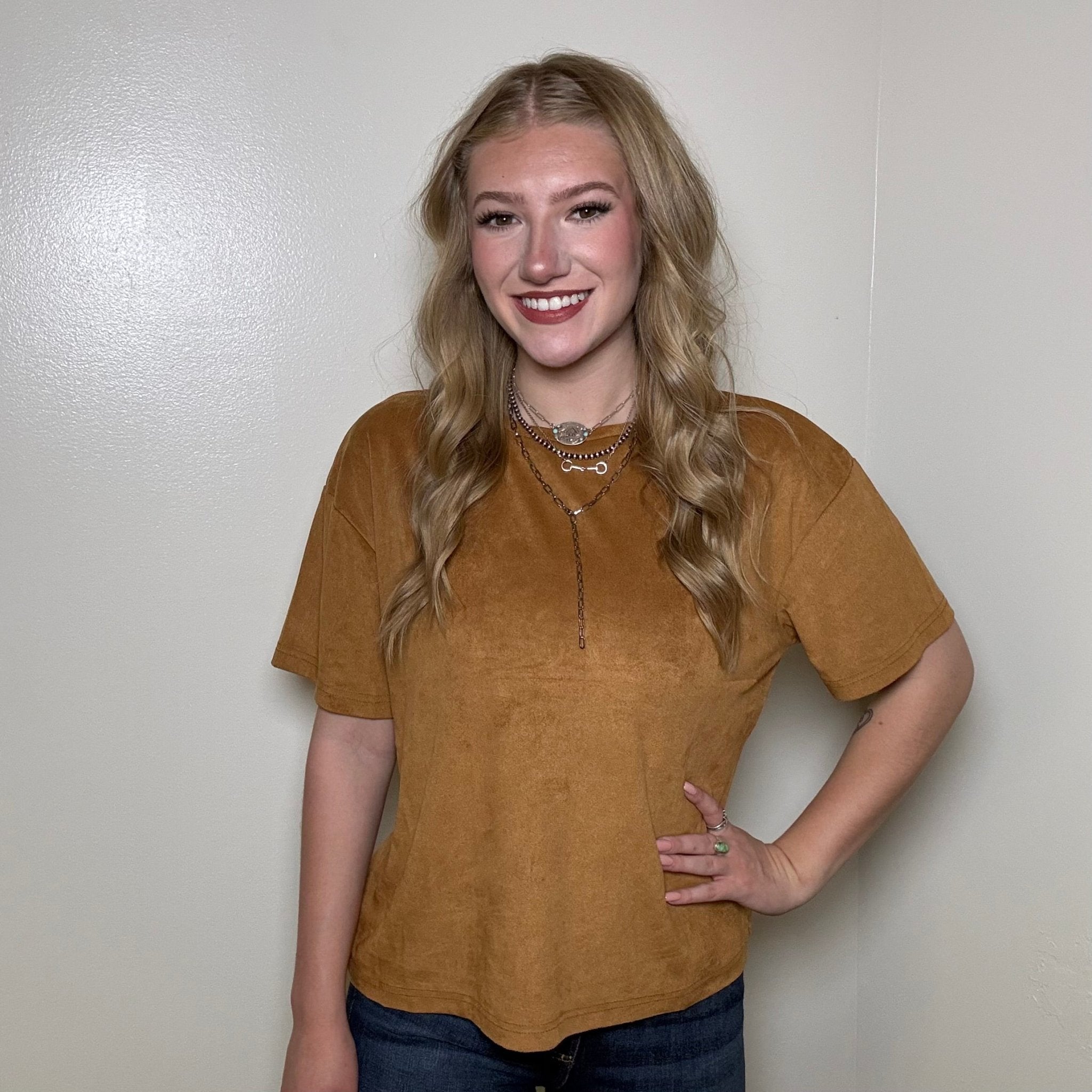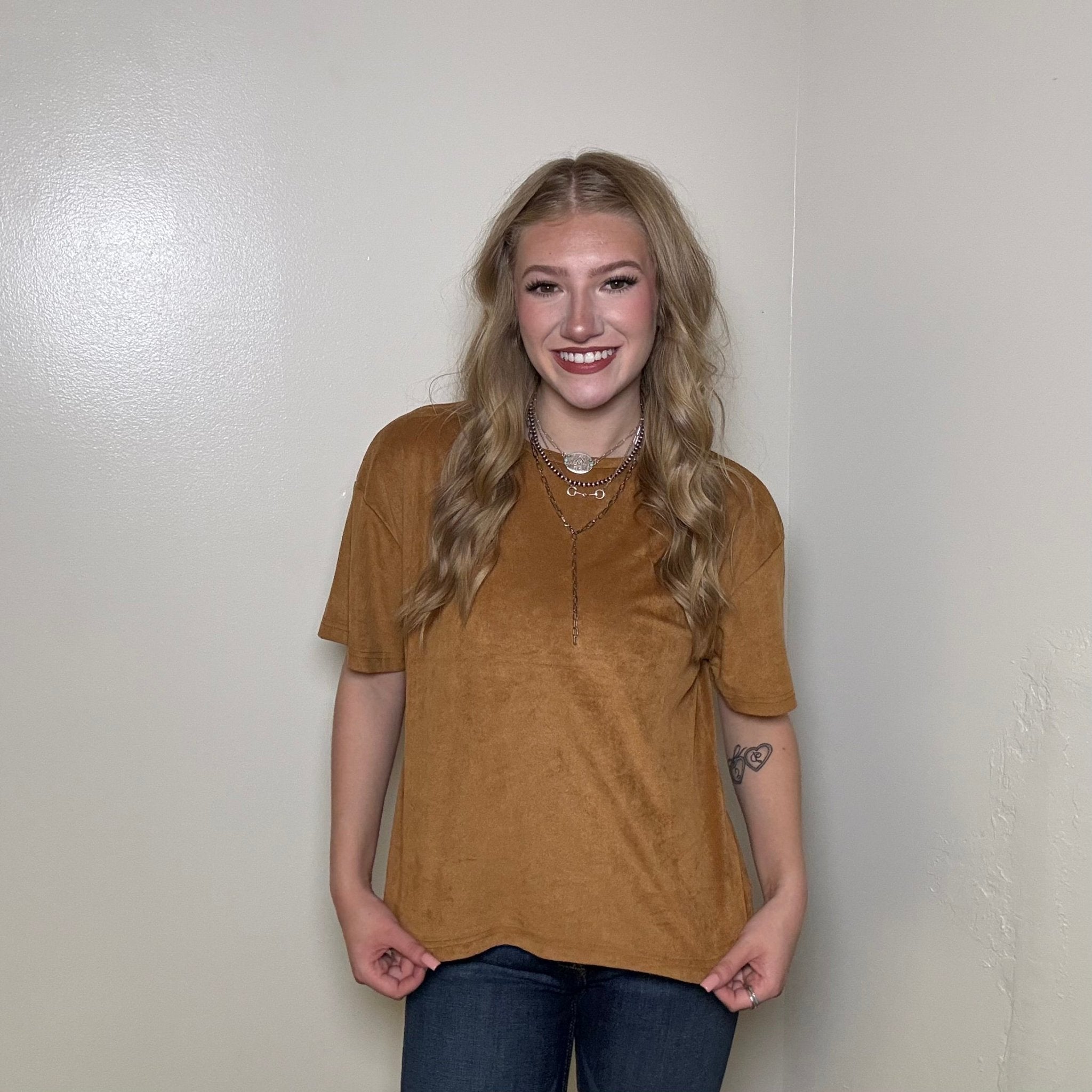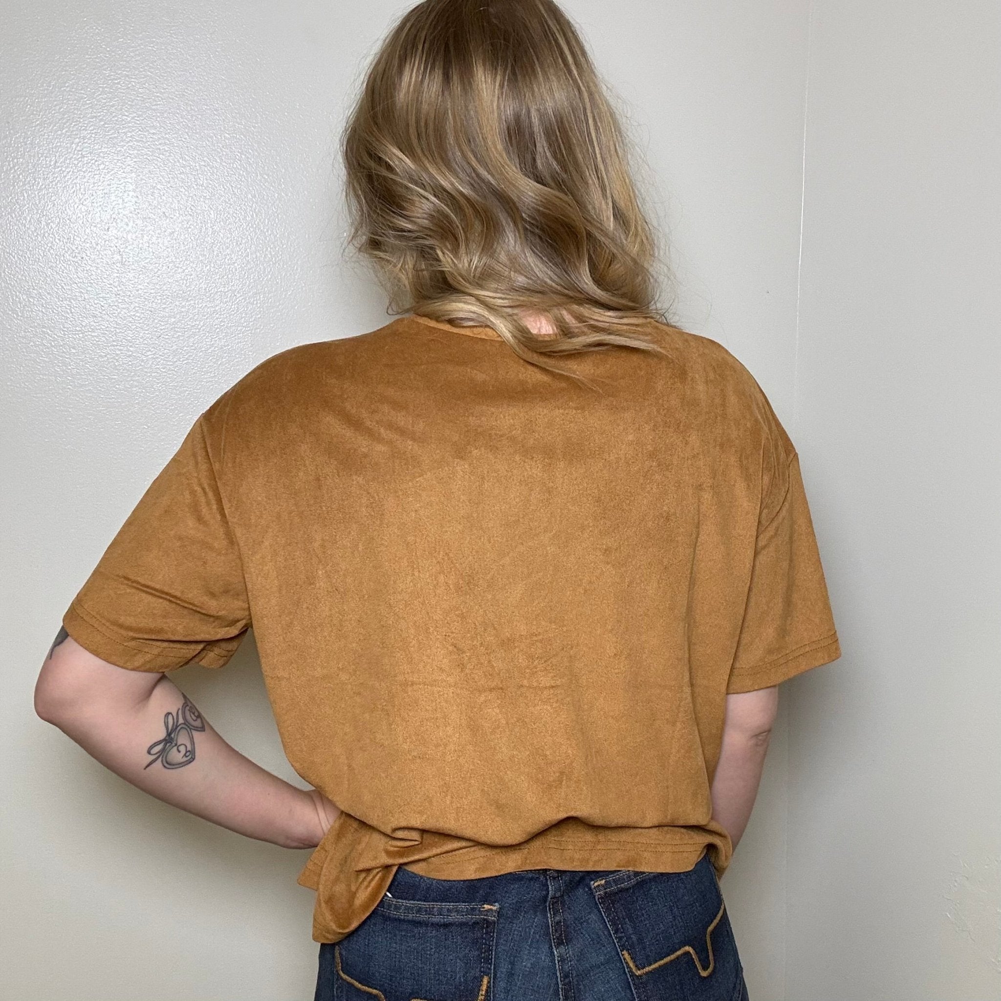 Camel Brown Suede Like Short Sleeve Shirt