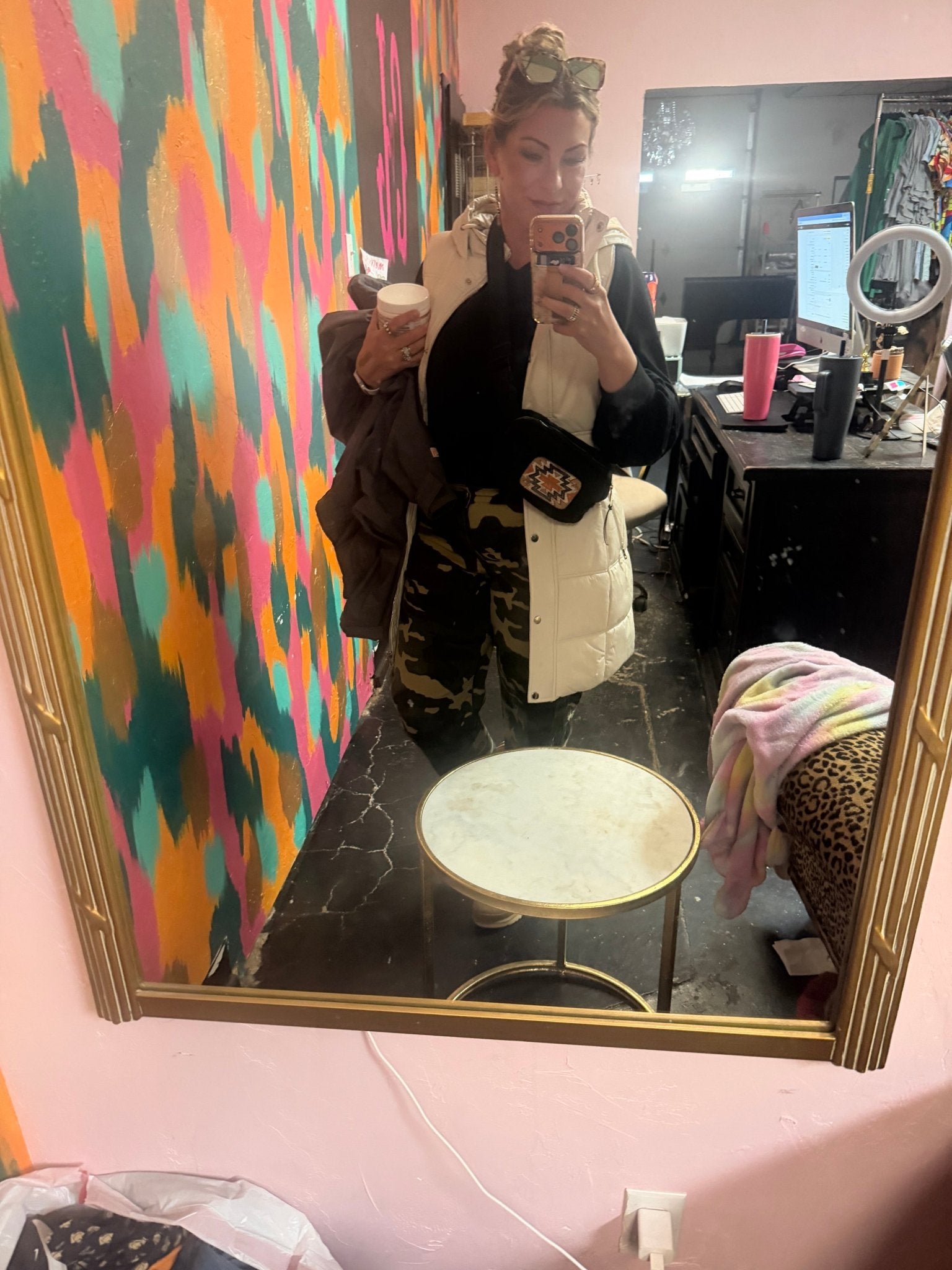 The cream button down puffer vest is the perfect addition to your cold-weather wardrobe. Its long design ensures you stay warm while maintaining a chic silhouette. The vest features a convenient hood for those unexpected windy days, making it as functional as it is stylish.