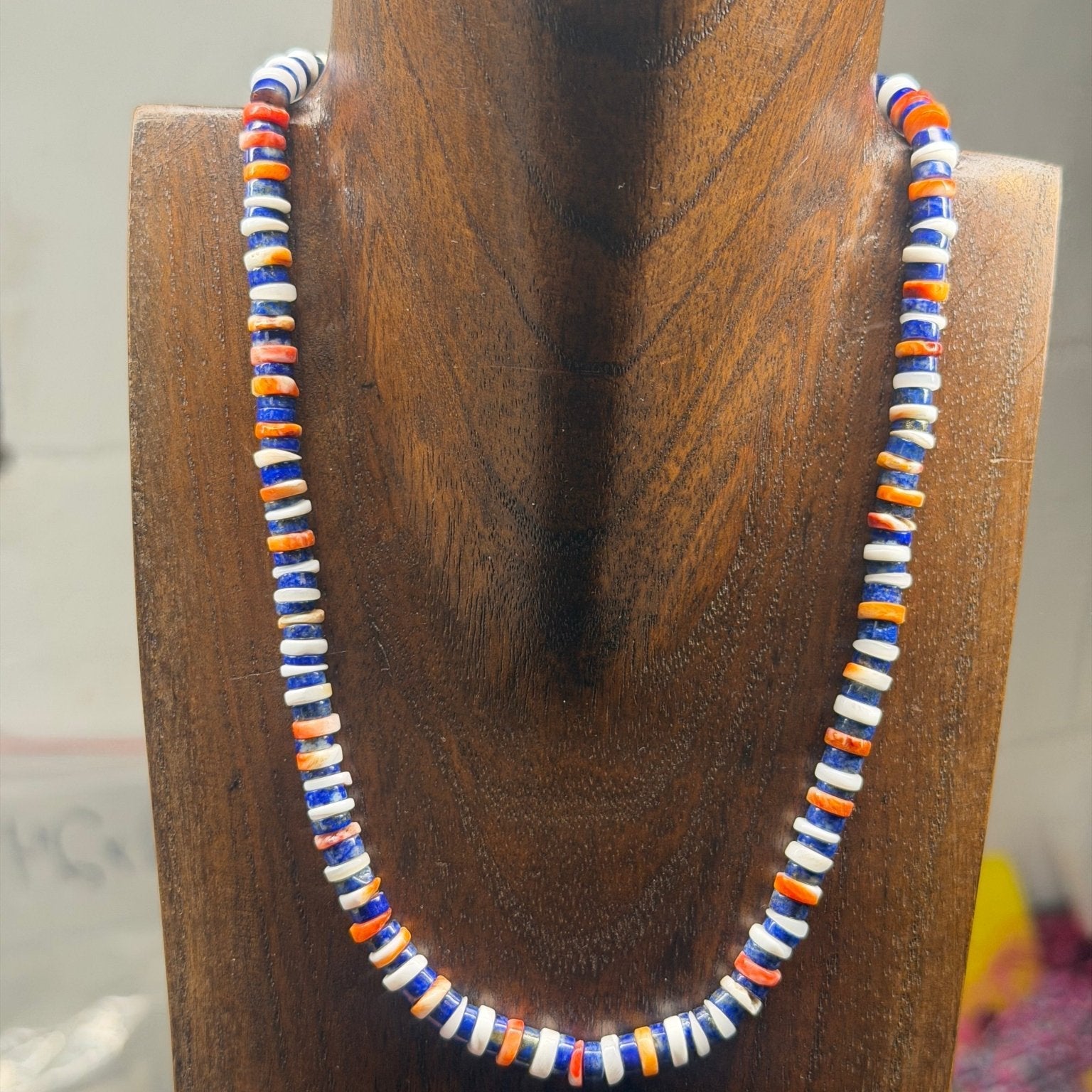 16 inch Orange Spiny & Lapis Sterling Silver Necklace