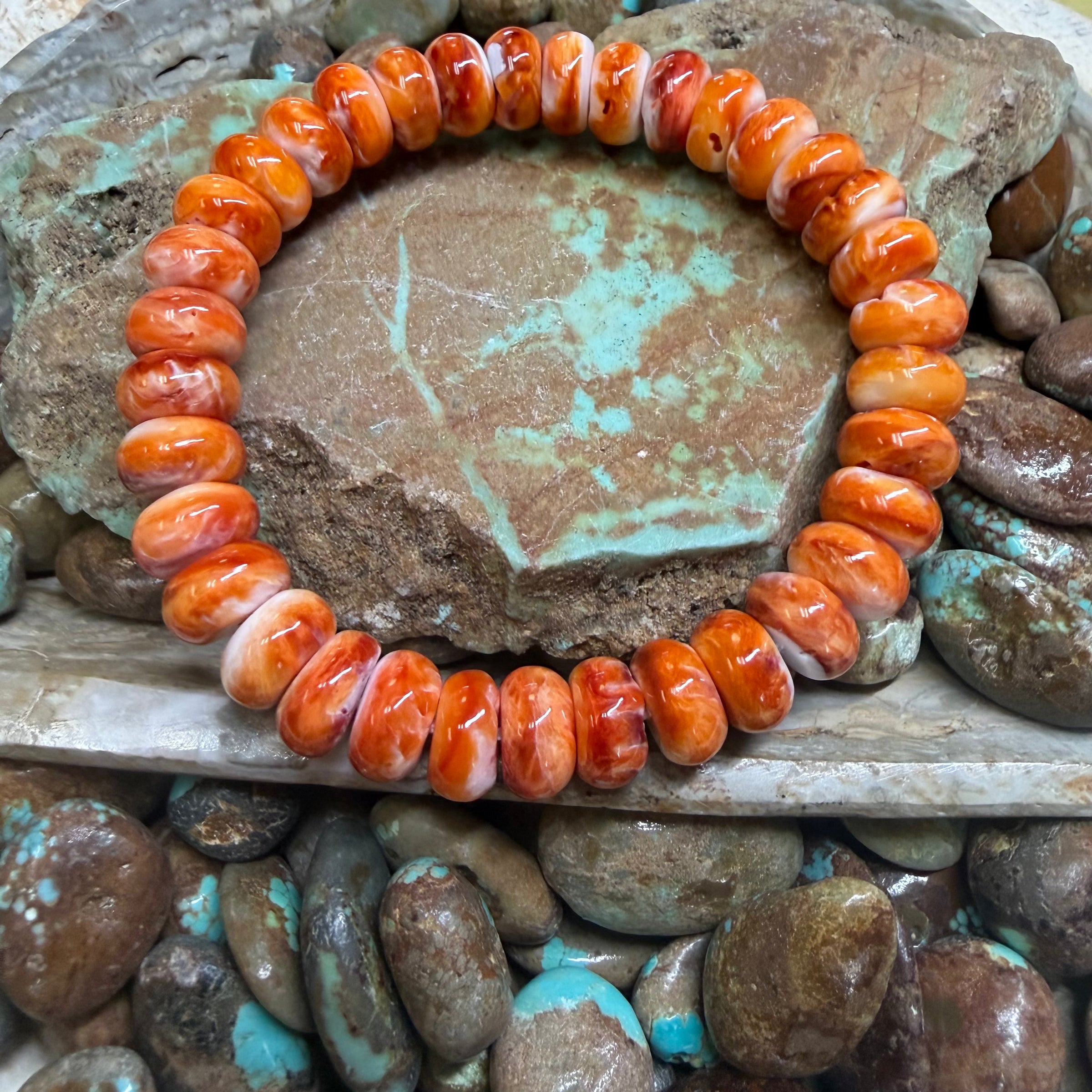 Genuine Orange Spiny Rondelle Beaded Stretchy Bracelet