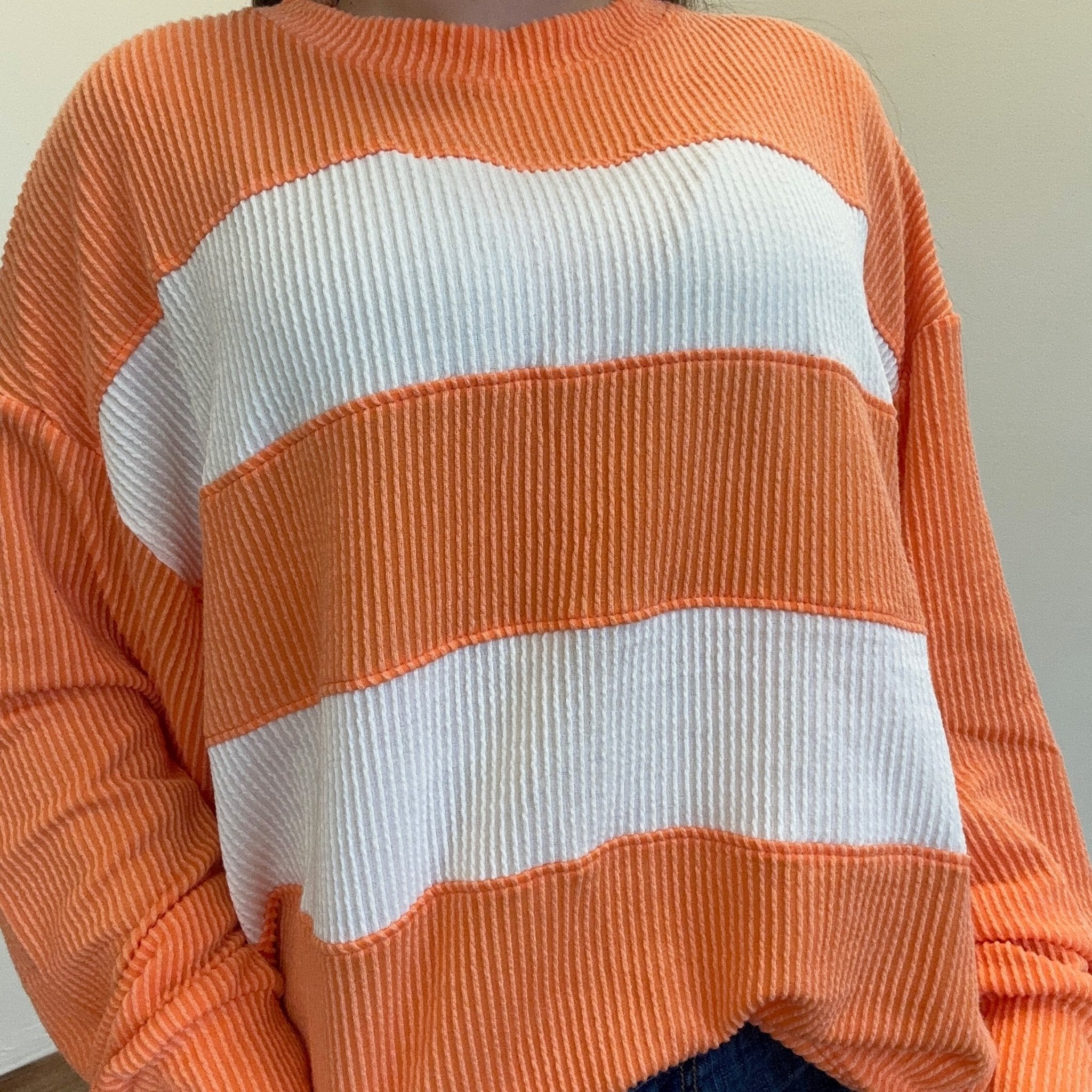 Orange & White Ribbed Striped Long Sleeve Shirt