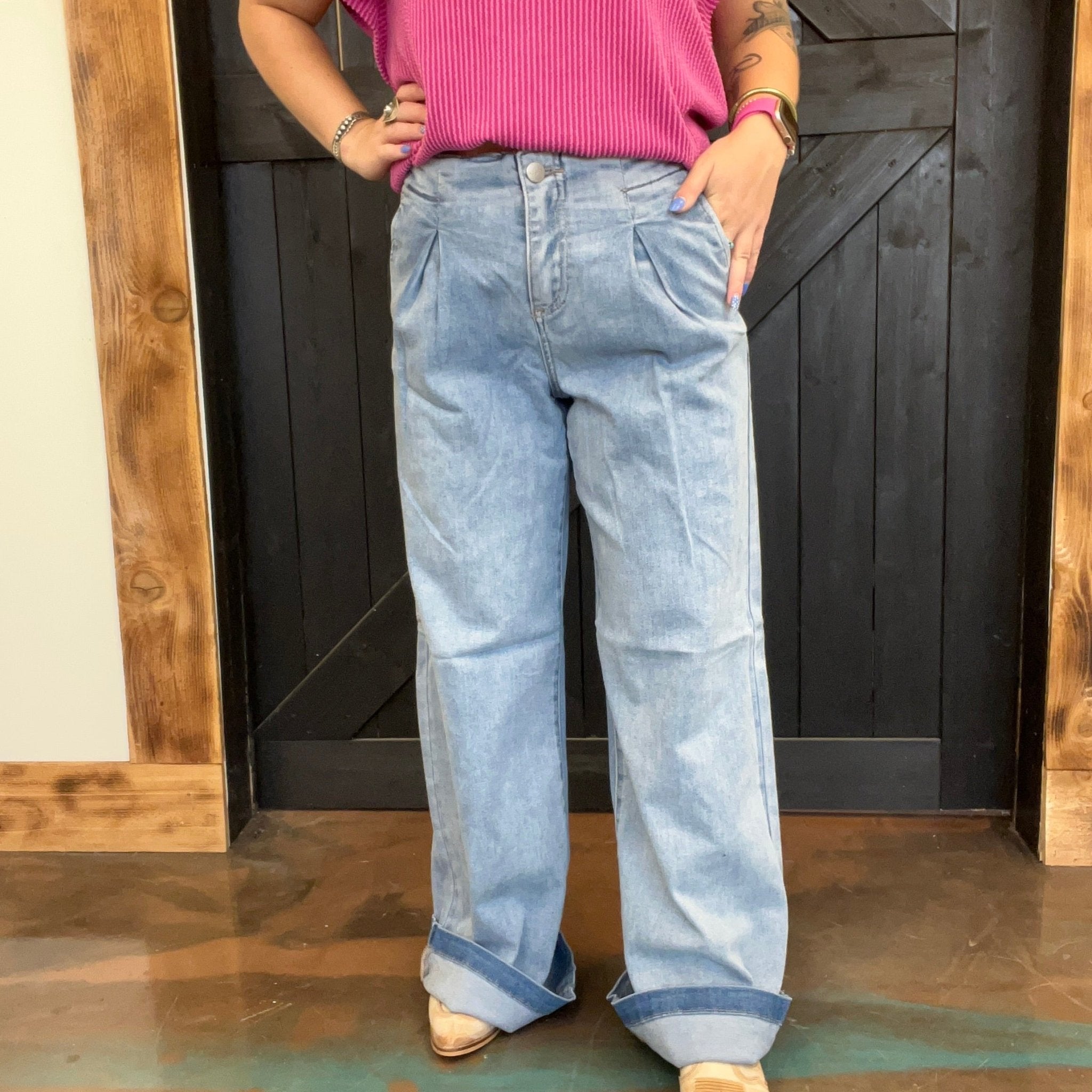Pleat Front Loose Fit Mid Rise Risen Jeans