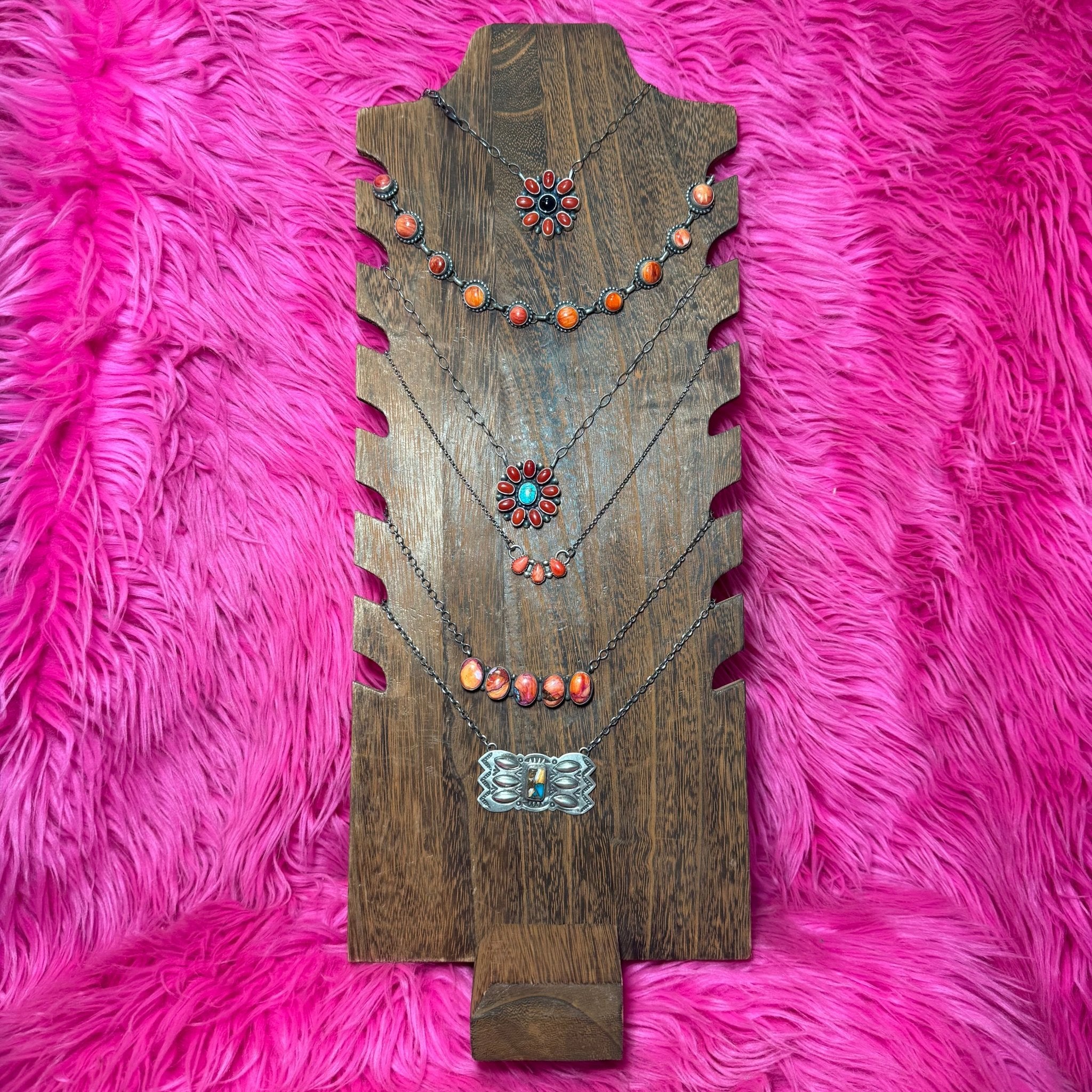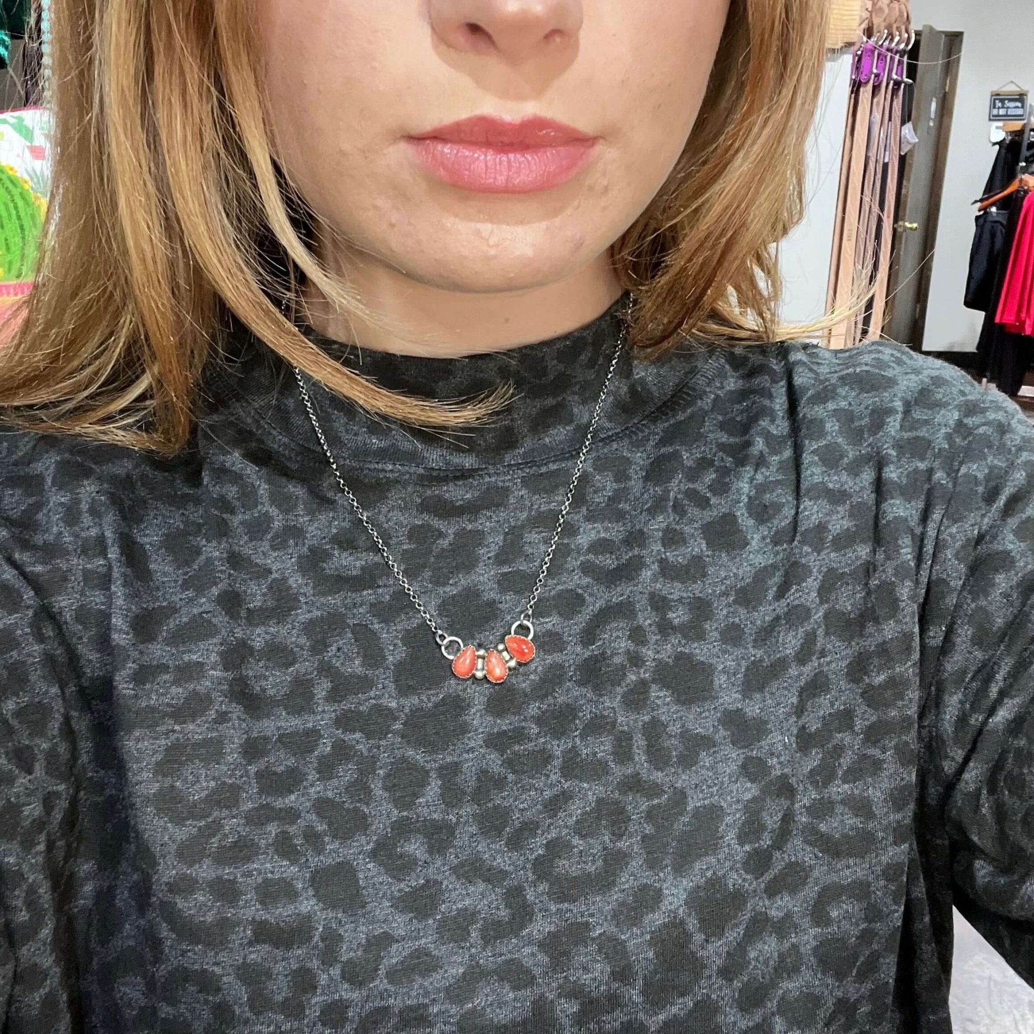 Red Spiny 3 Stone Tear Drop Sterling Silver Necklace