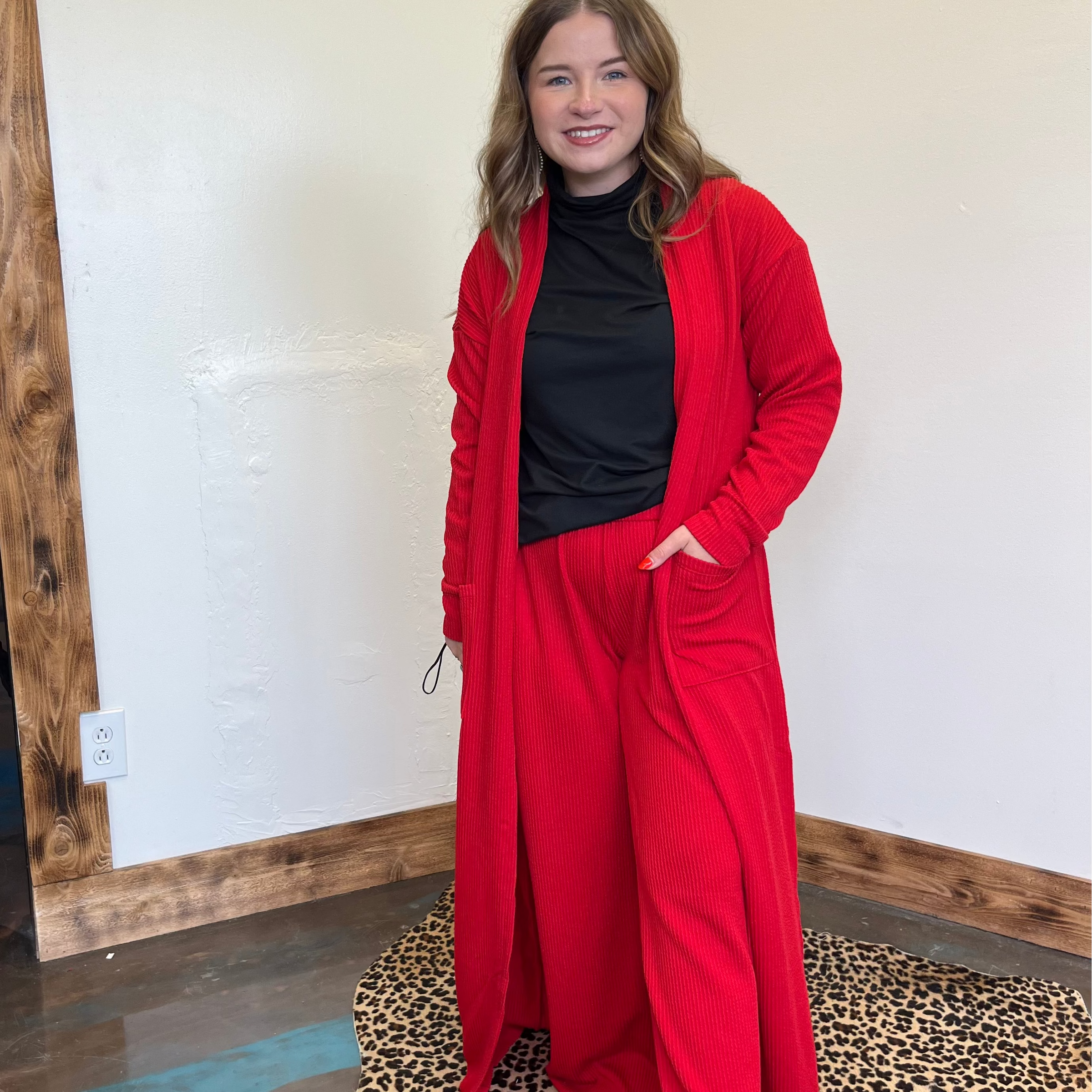 Matching pants make for the perfect set. Snag them here https://countrylaceboutique.com/products/red-sunrise-ribbed-pants-1