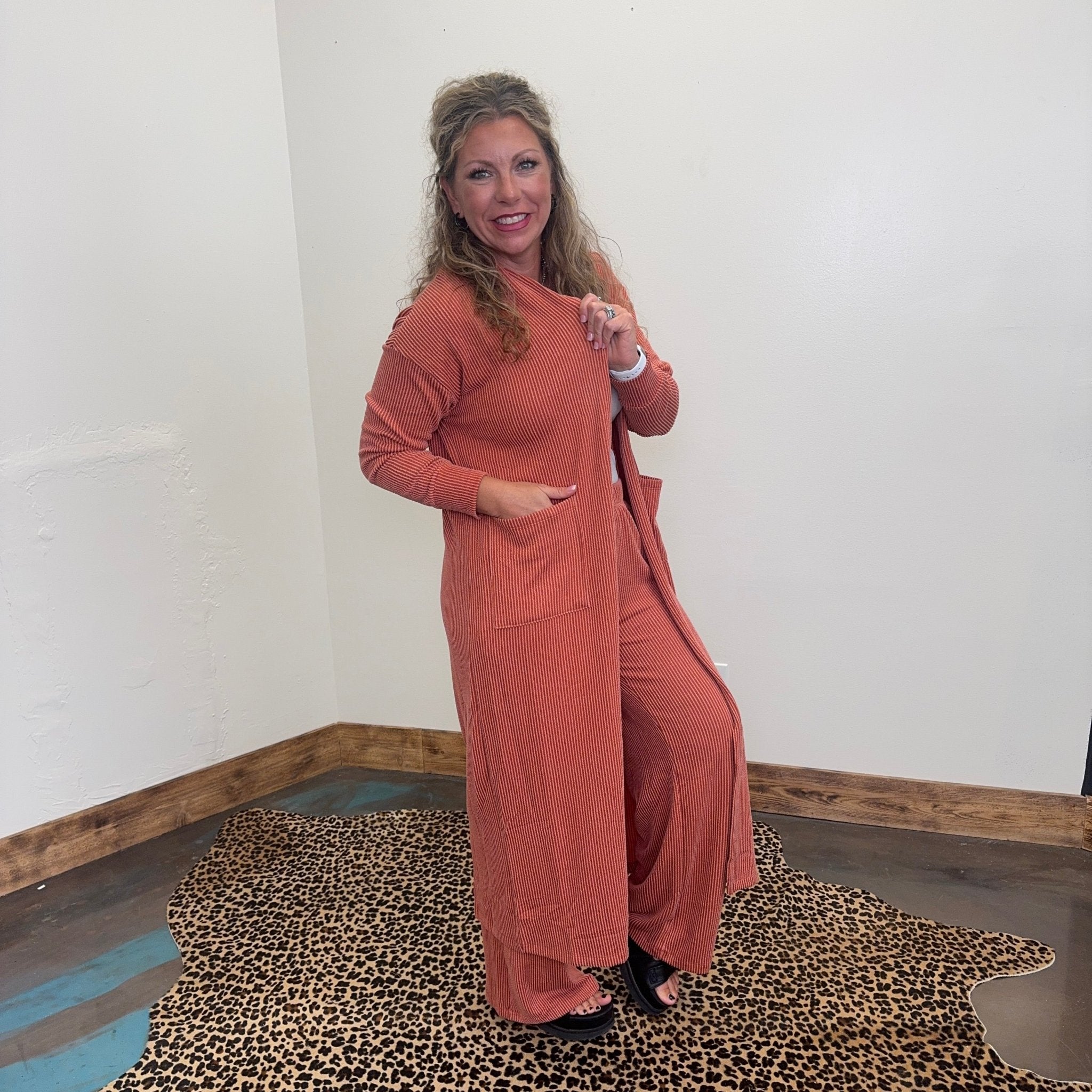 Terracotta Orange Ribbed Duster Cardigan