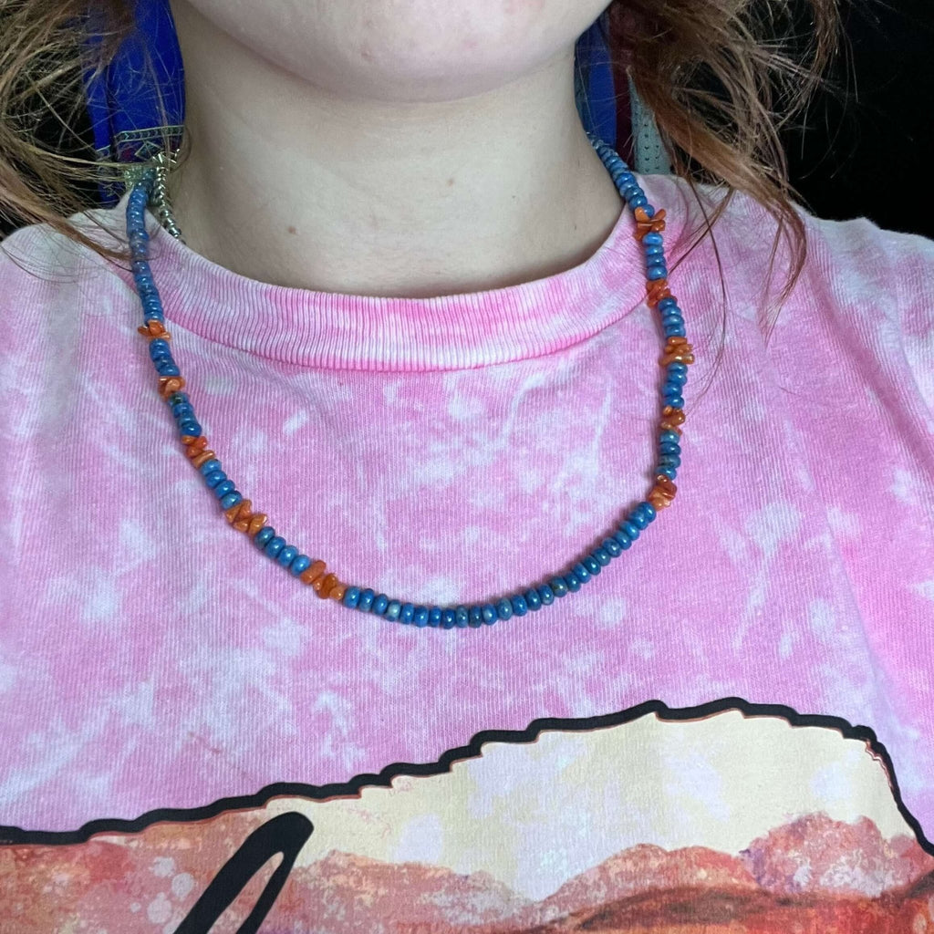 20 inch Lapis and Orange Spiny Sterling Silver Necklace