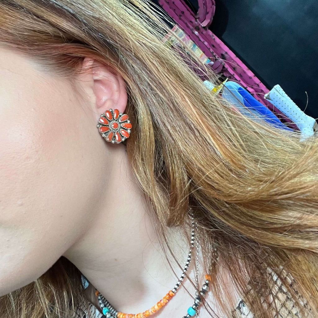 Red Cluster Sterling Silver Stud Earring
