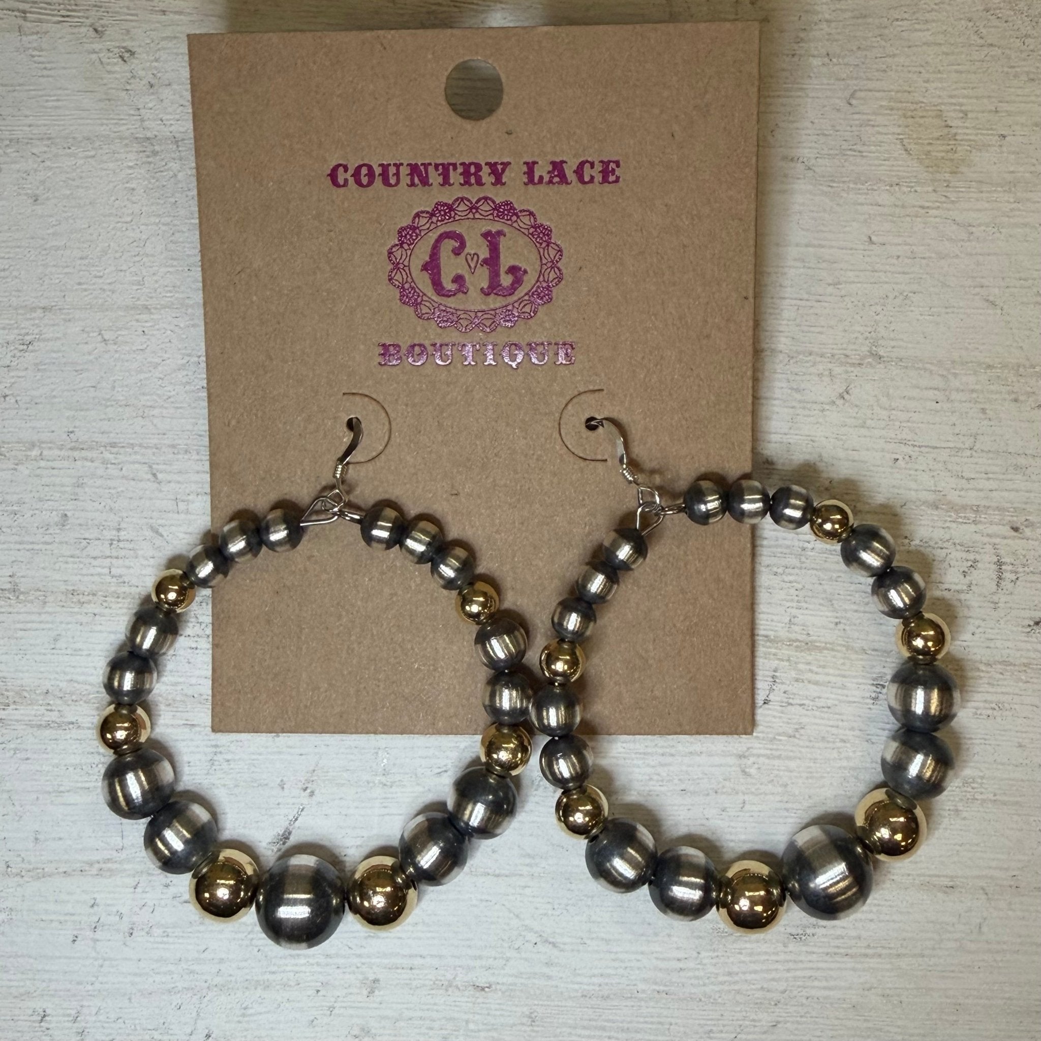 Big Round Graduated Navajo Pearl with Gold Plated Pearls French Hook Sterling Silver Earring