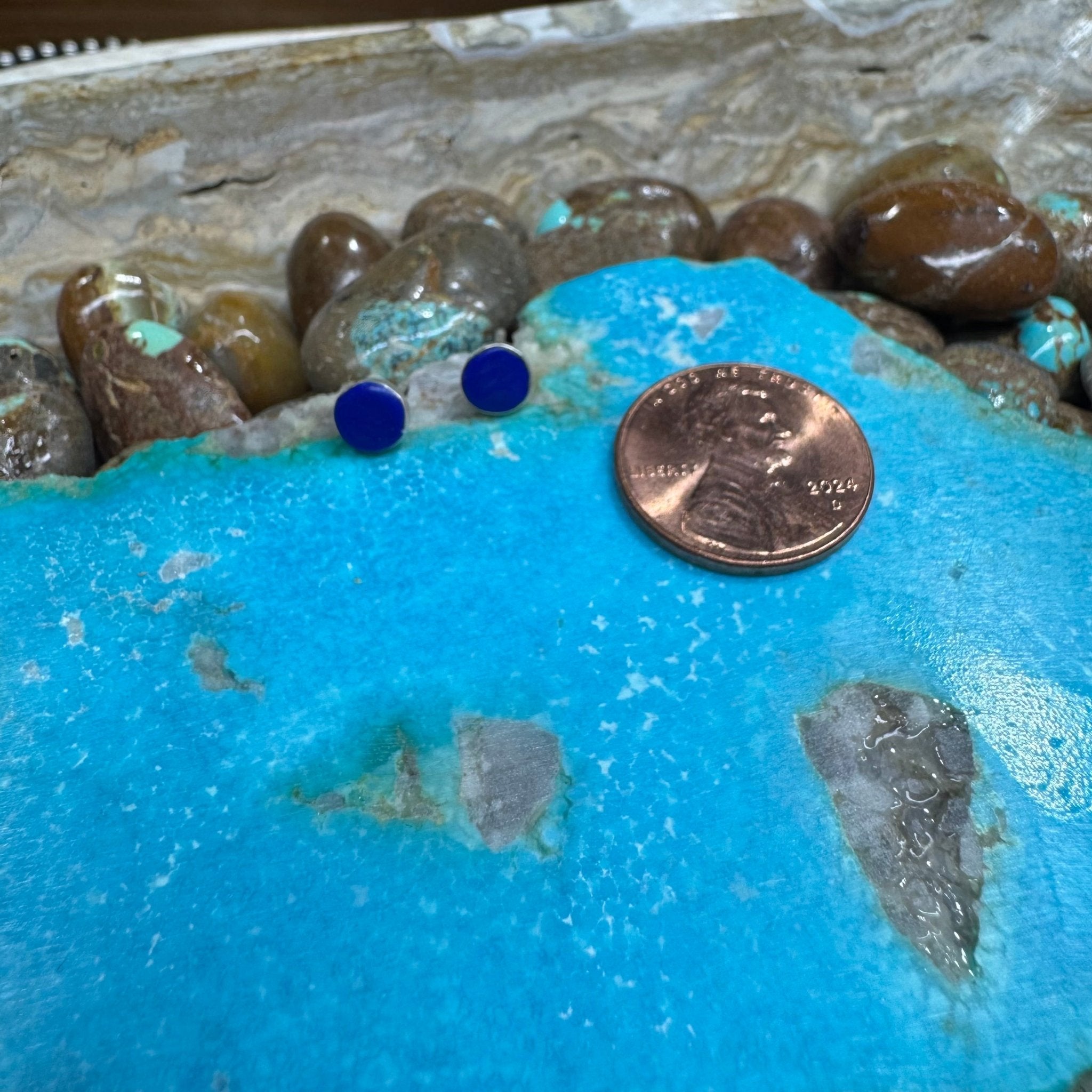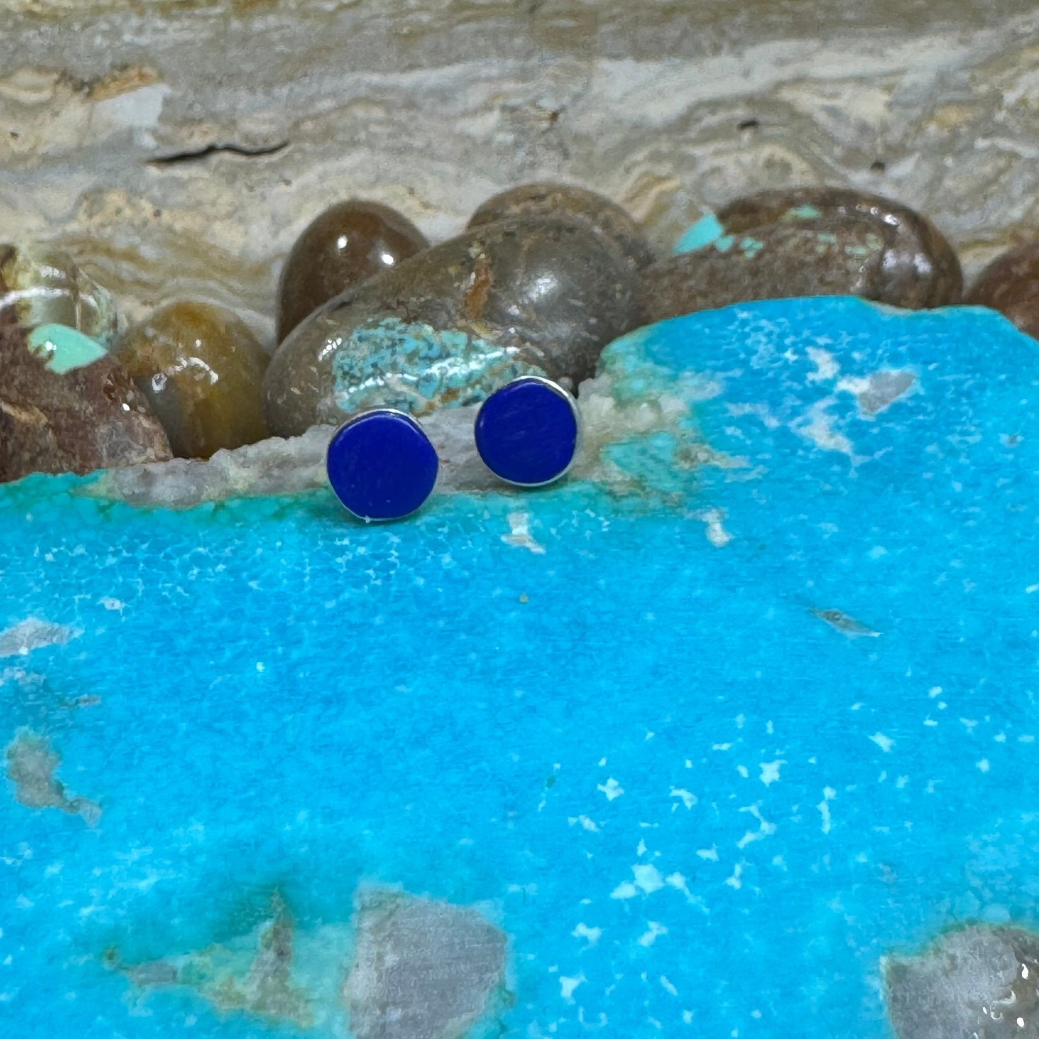 Blue Round Stud Post Sterling Silver Earring