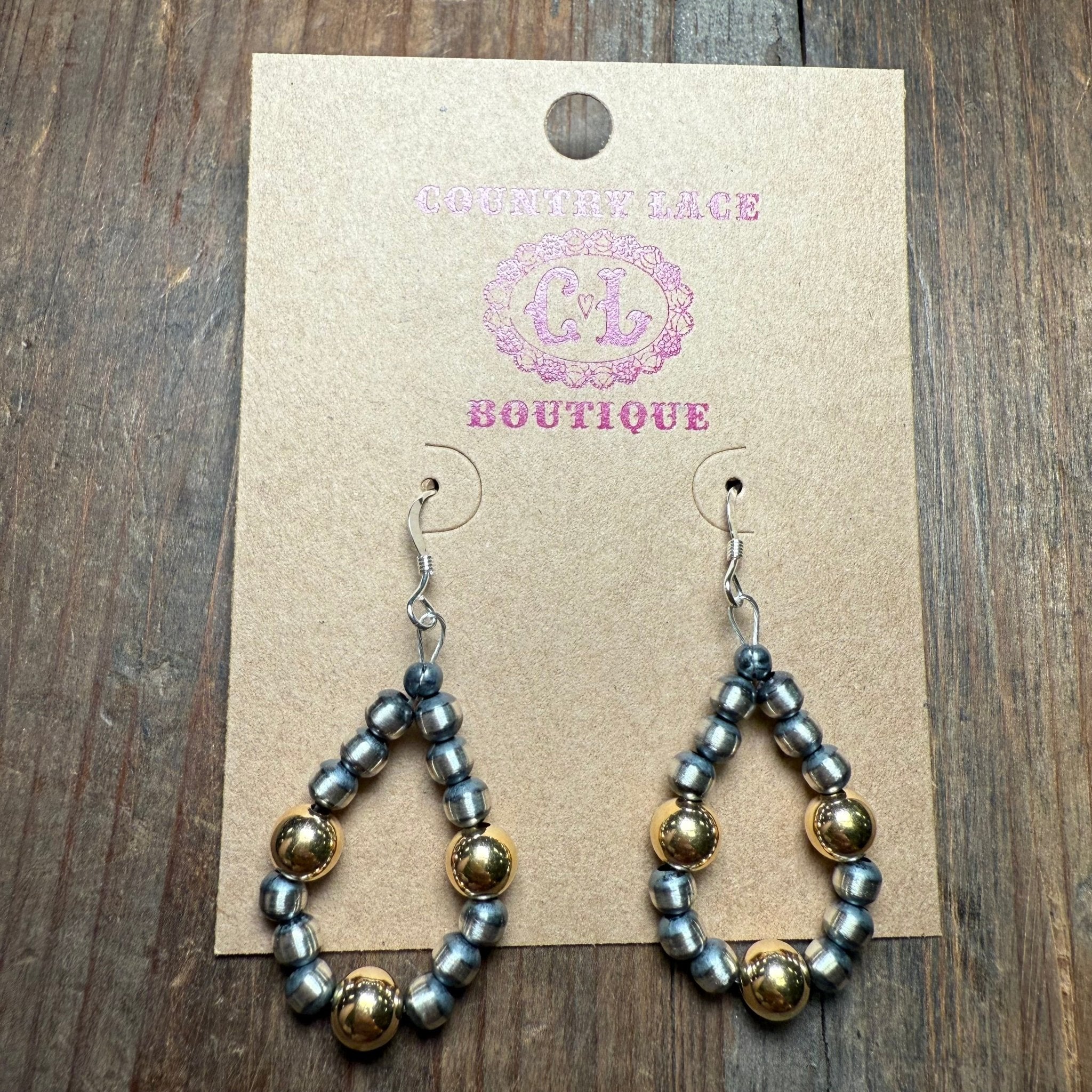 Dainty Patterned Navajo Pearl with Gold Plated Pearls French Hook Sterling Silver Earring