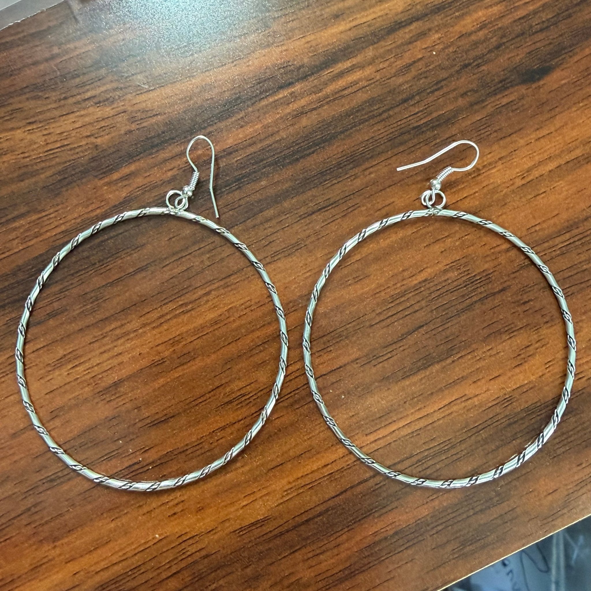Giant Twisted Hoop French Hook Sterling Silver Earring