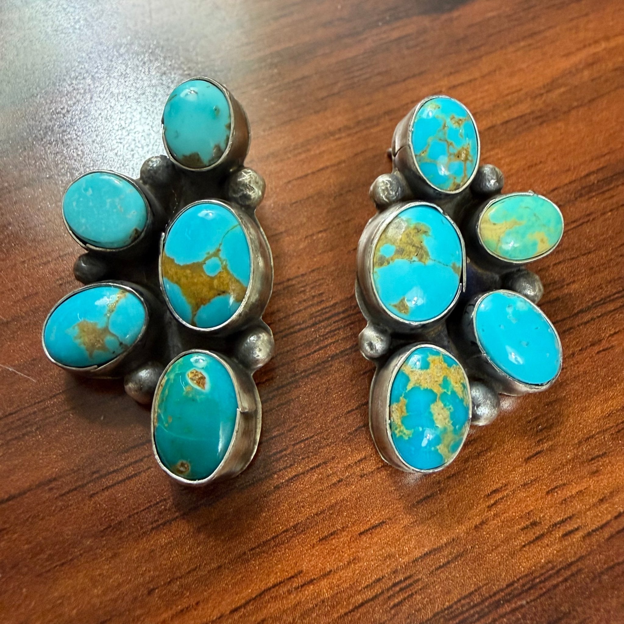Gorgeous Turquoise Half Cluster Post Sterling Silver Earrings