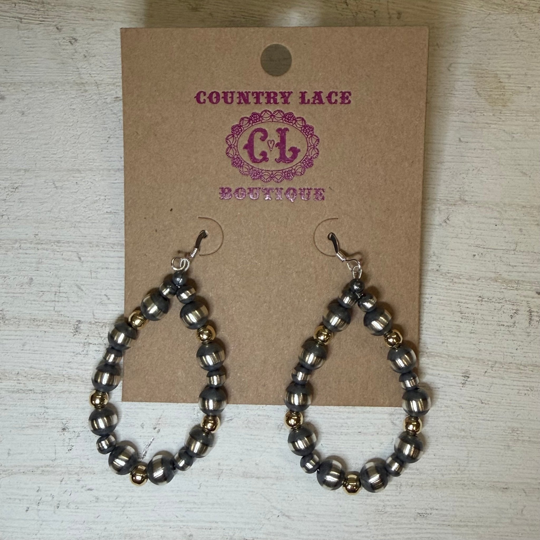 Patterned Navajo Pearl with Gold Plated Pearls French Hook Sterling Silver Earring