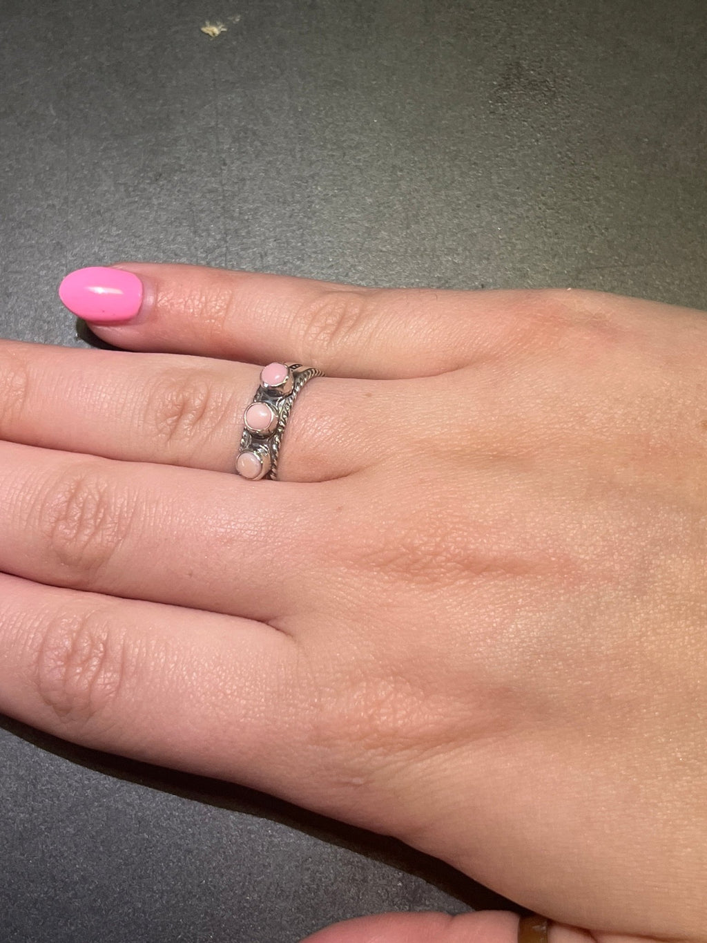 3 Stone Pink Conch Detail Band Sterling Silver Ring