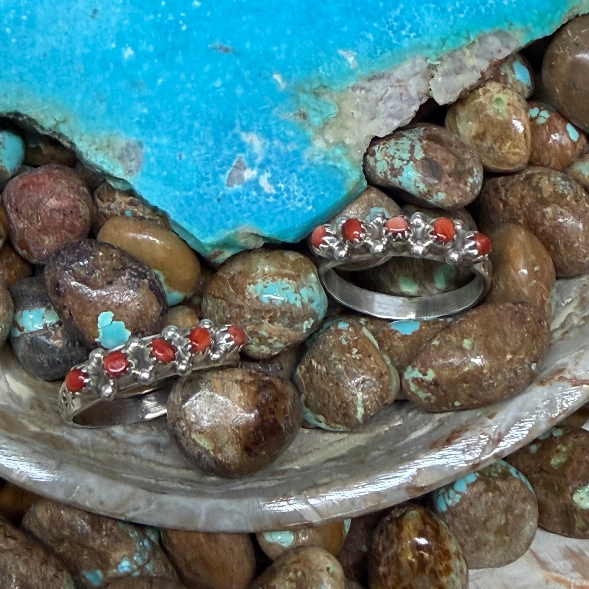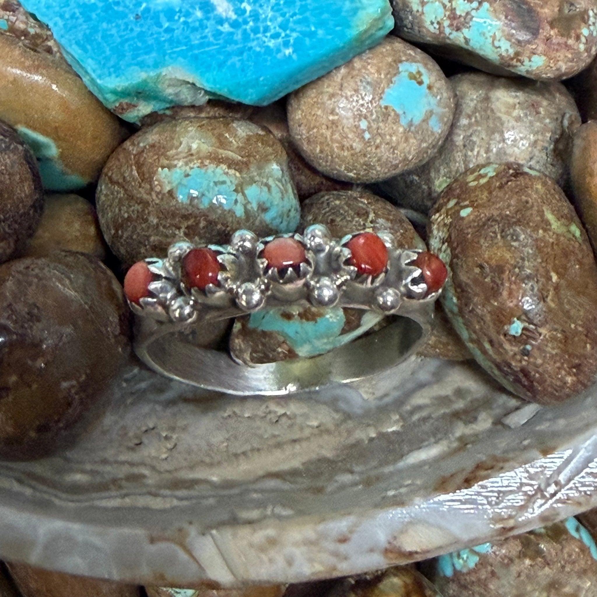 5 Red Spiny with detailed Silver Band Sterling Silver Ring Size 10