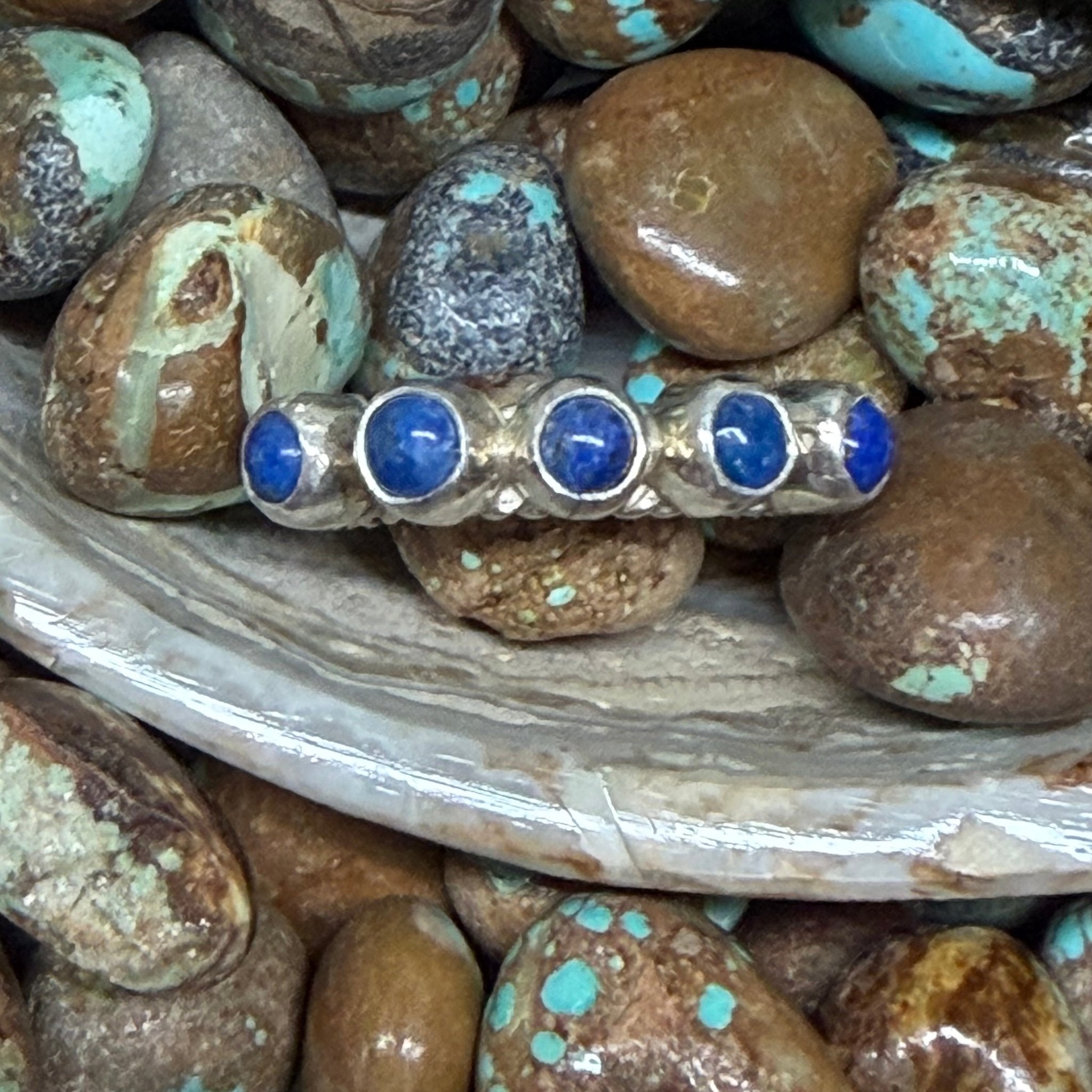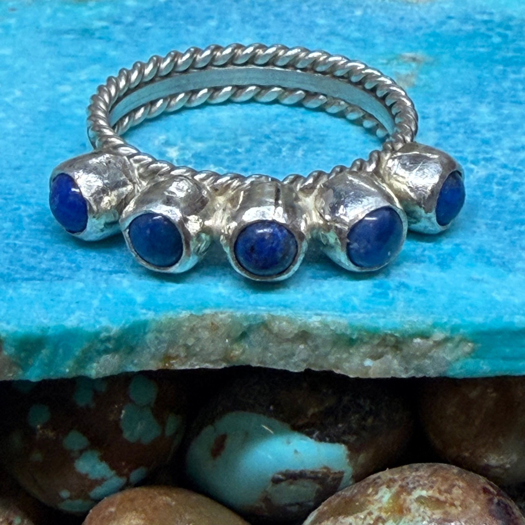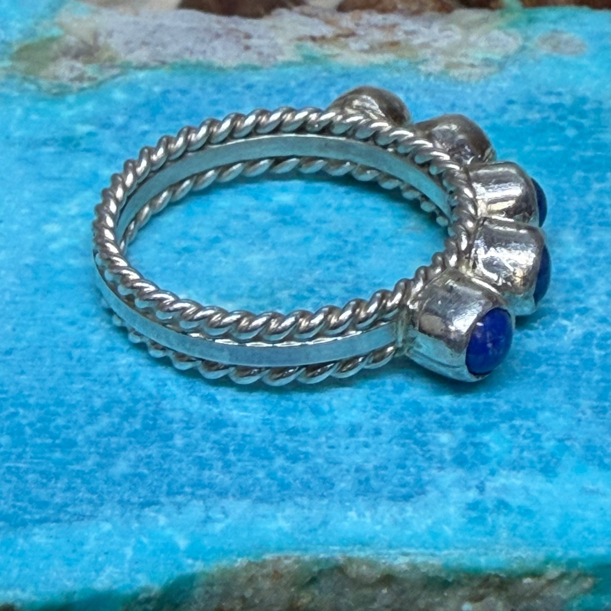 5 Stone Lapis Detail Band Sterling Silver Ring size 7.5
