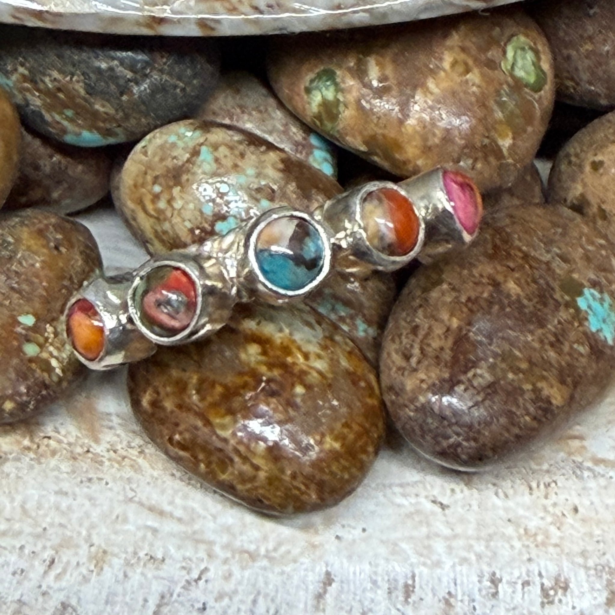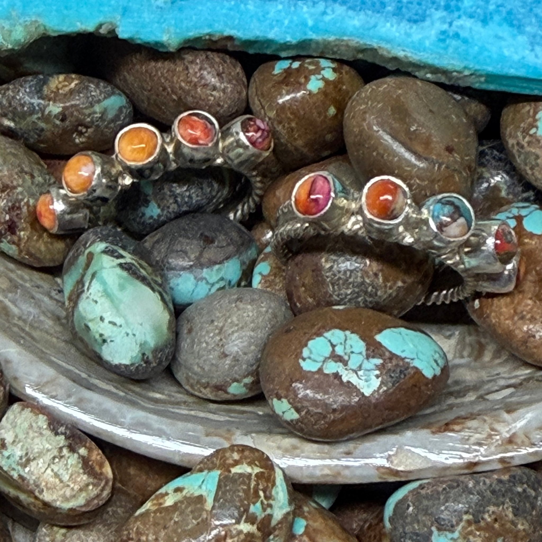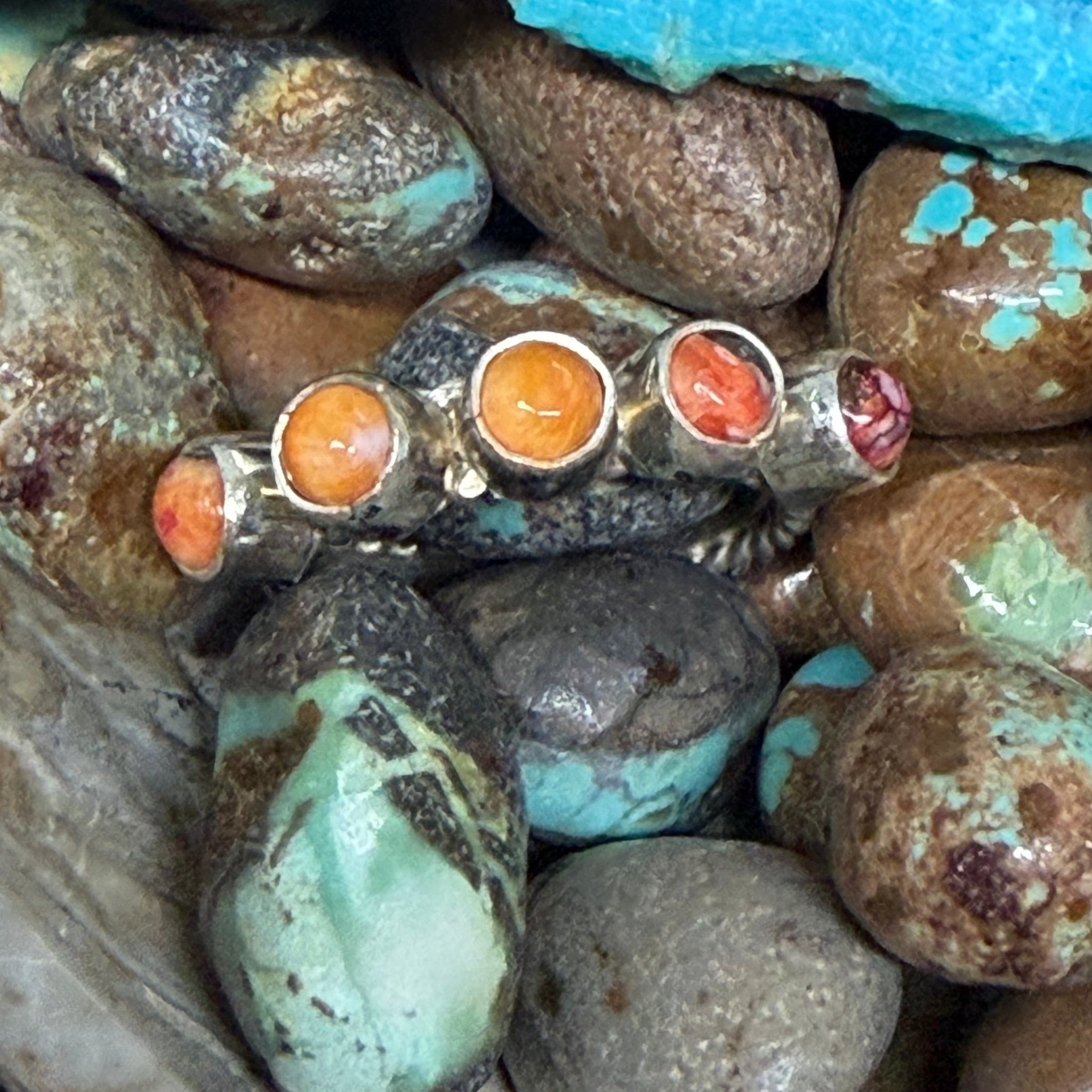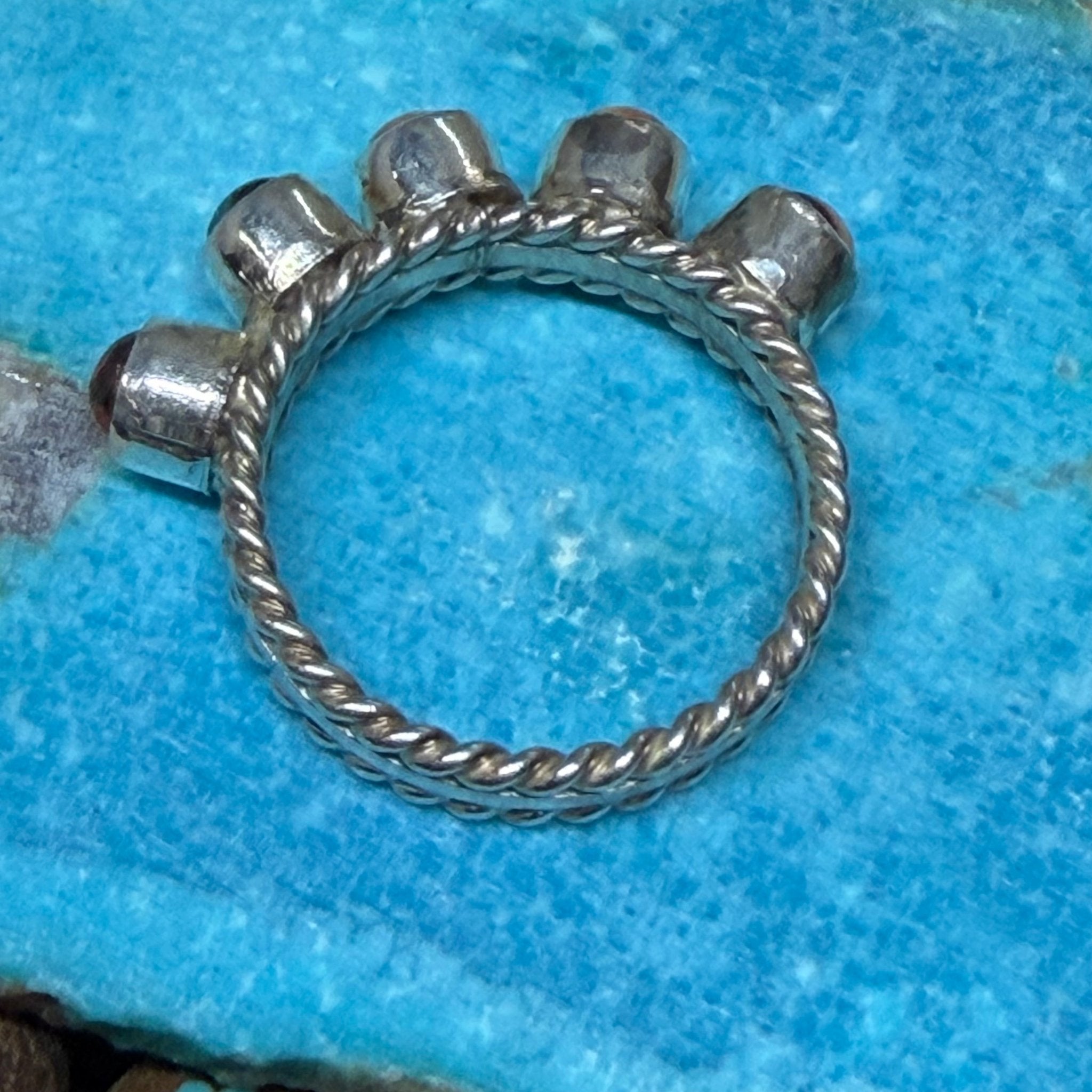 5 Stone Orange Krush Detail Band Sterling Silver Ring