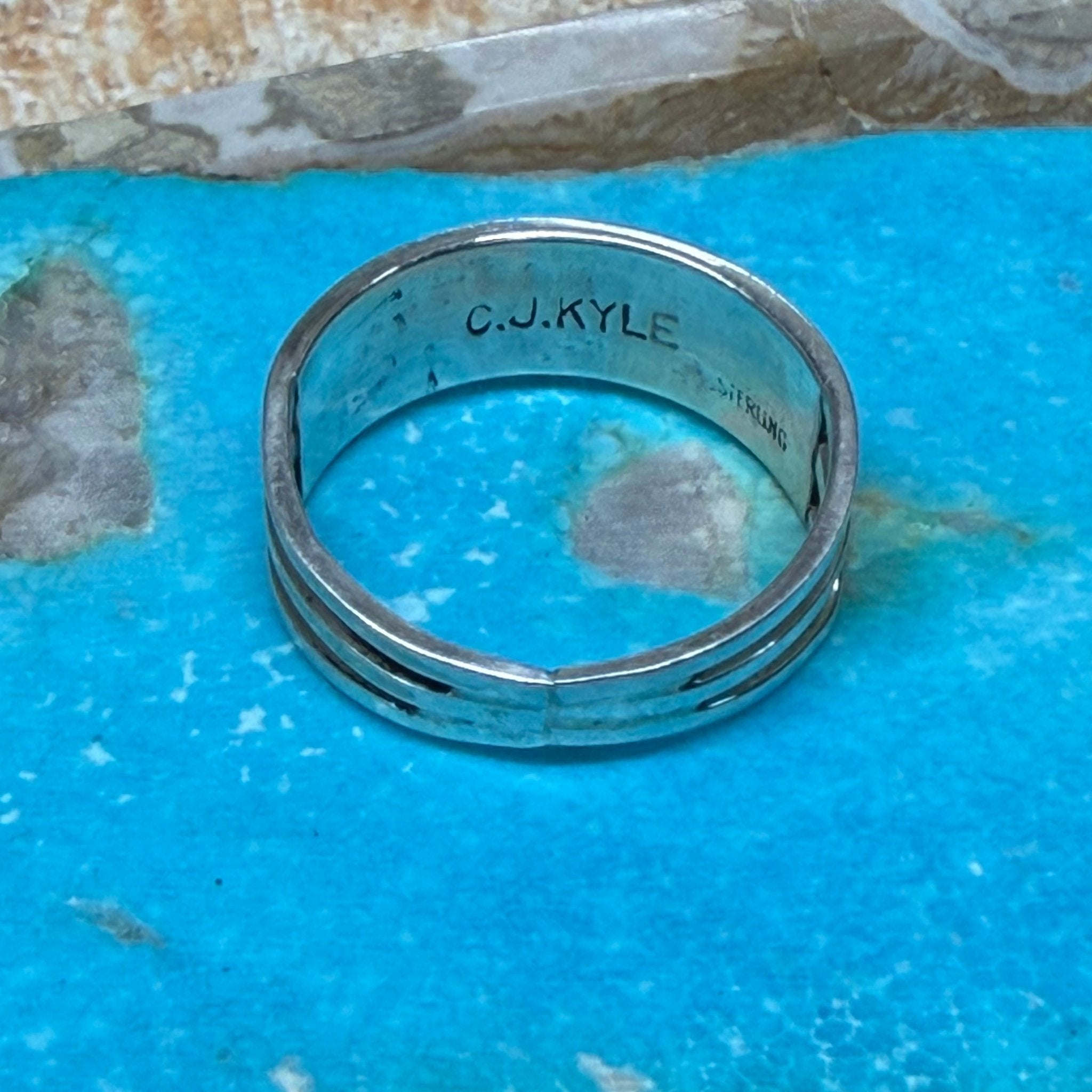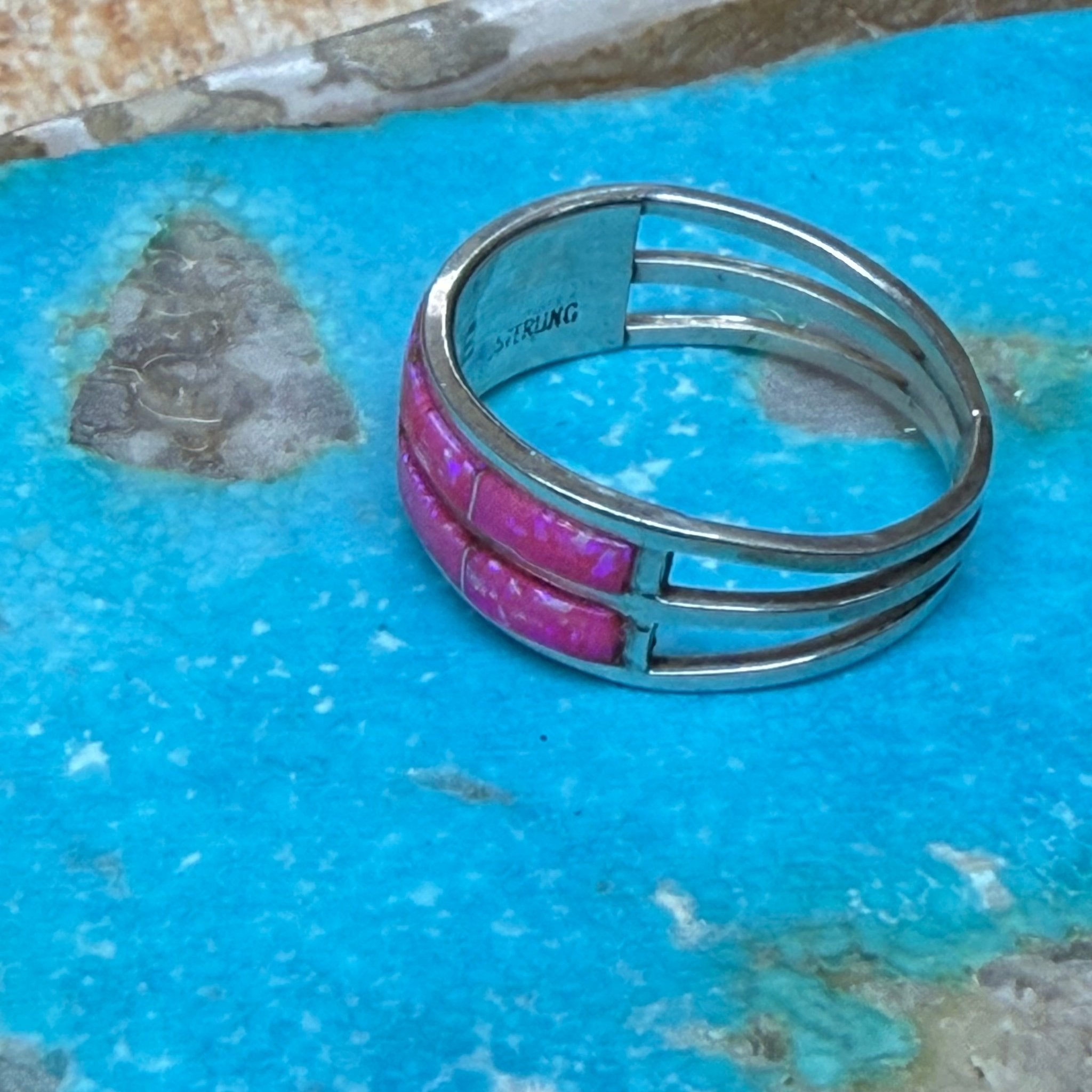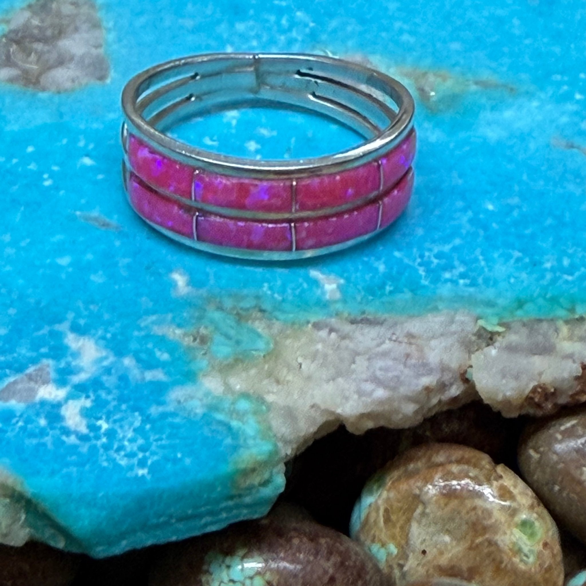 8 Hot Pink Opal Inlay Double Band Sterling Silver Ring