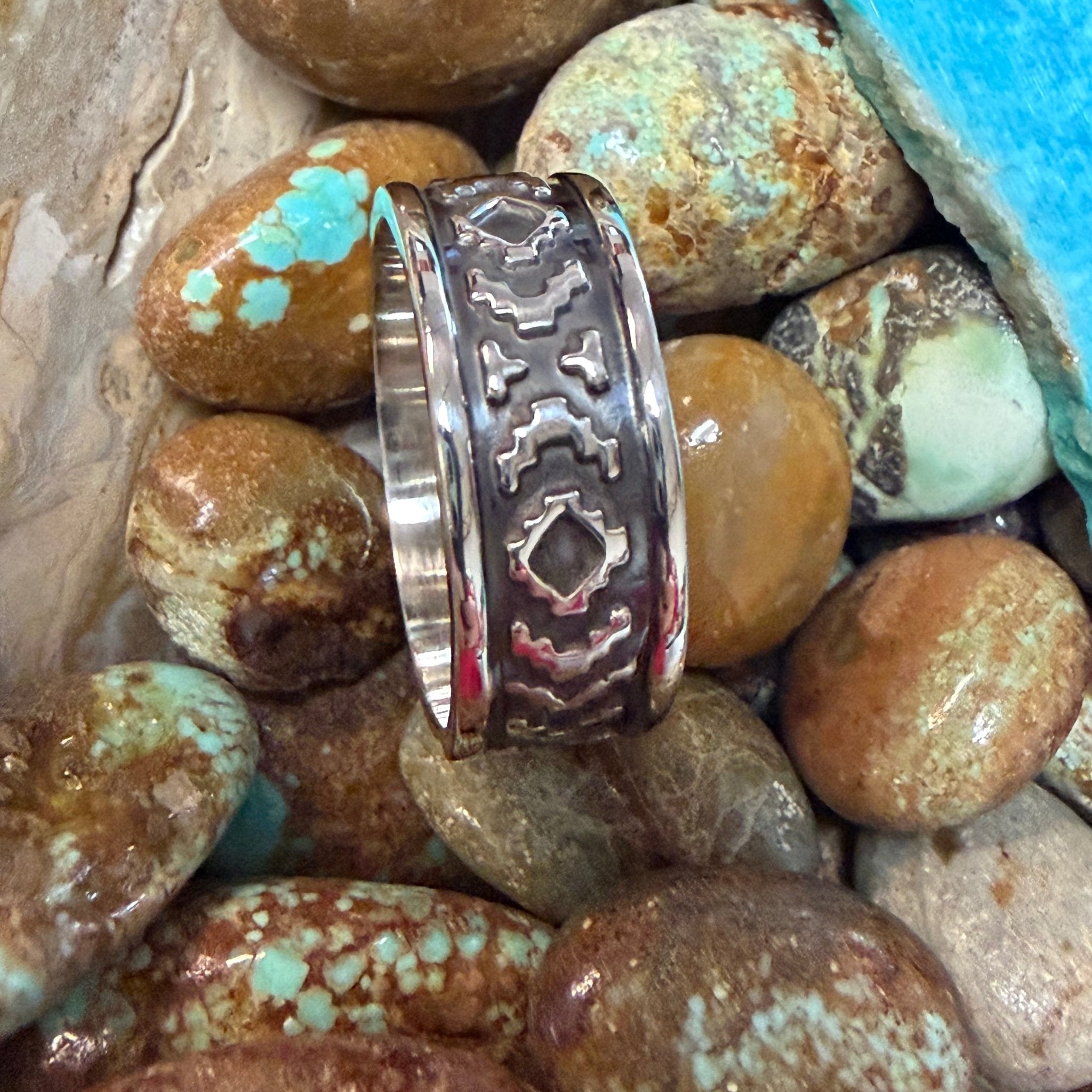 Aztec Patterned Sterling Silver Ring