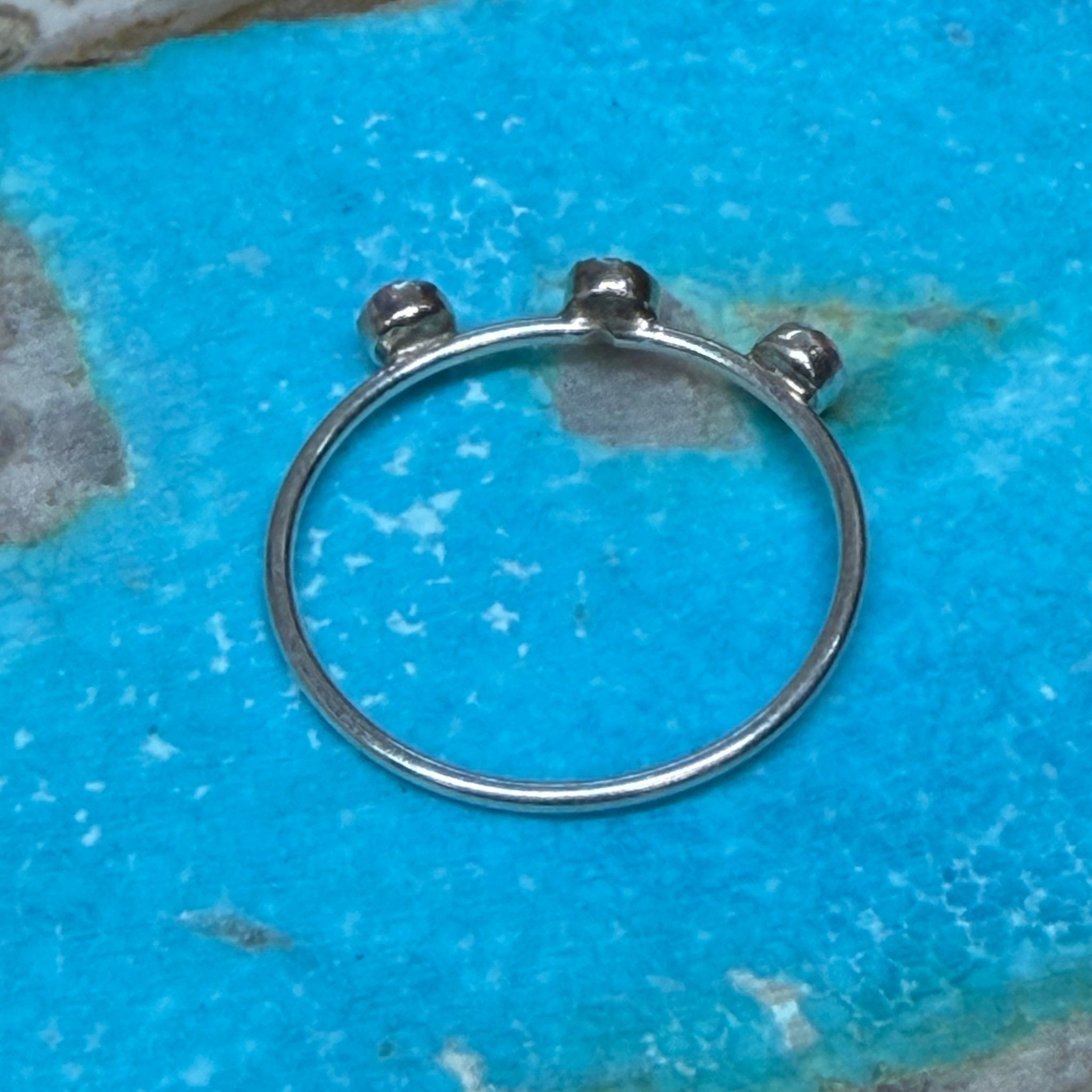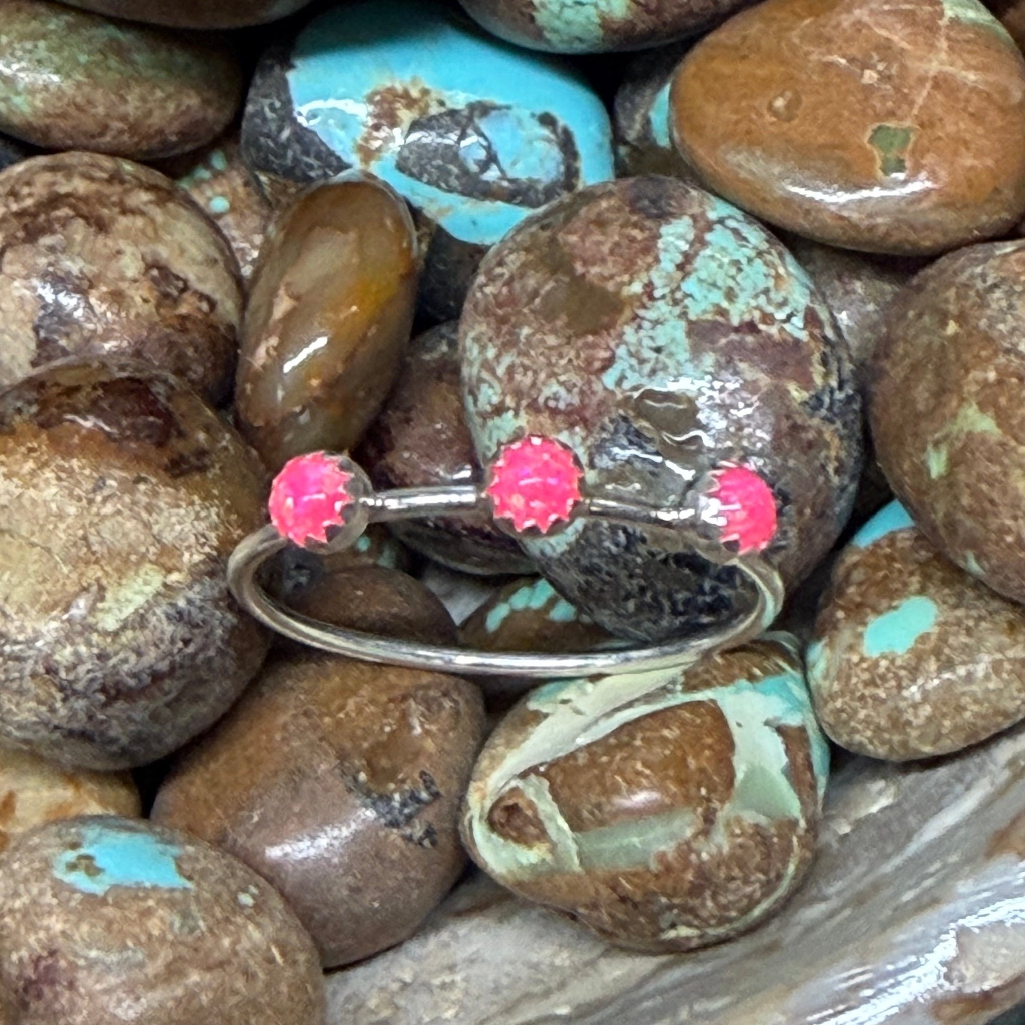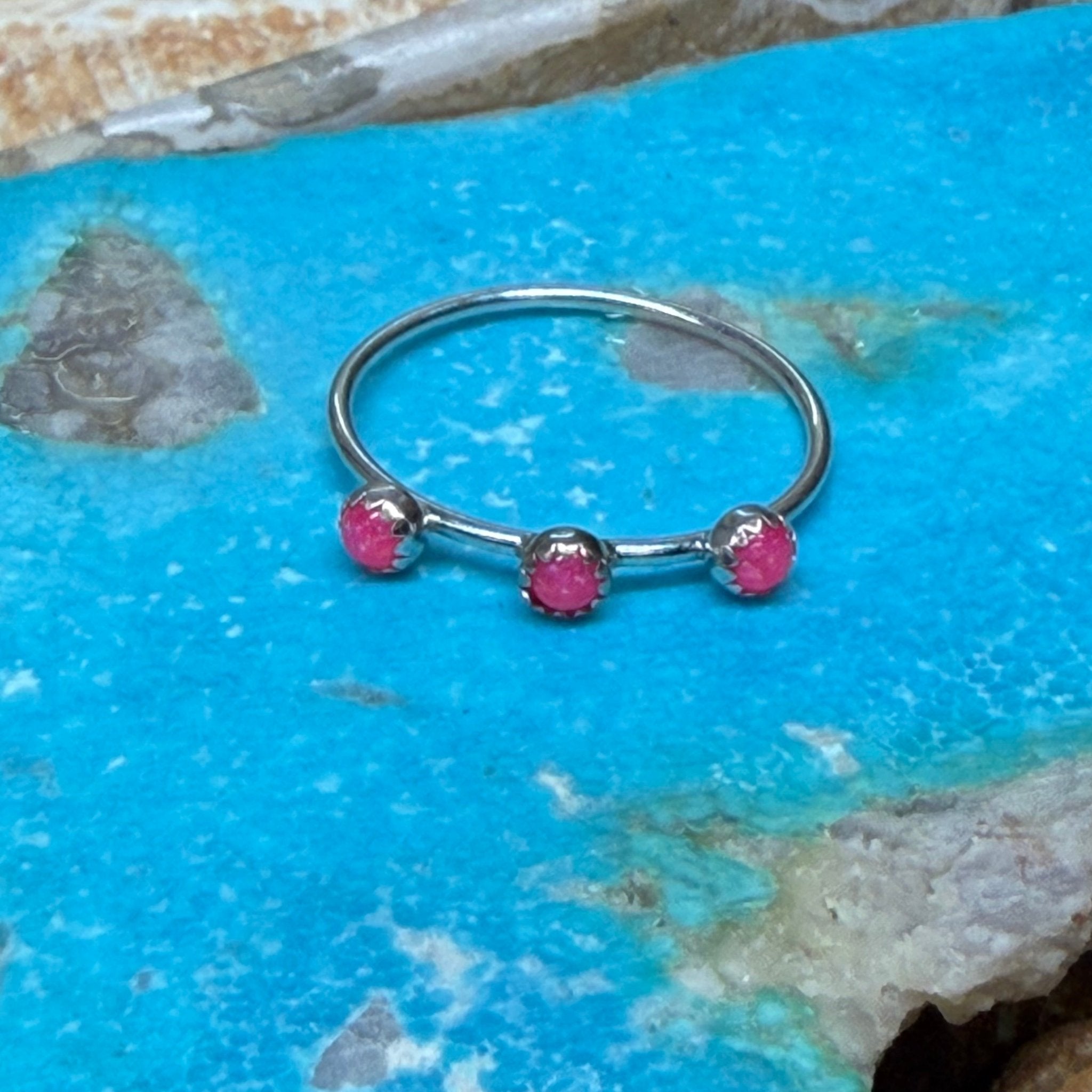 Dainty 3 Hot Pink Opal Sterling Silver Ring