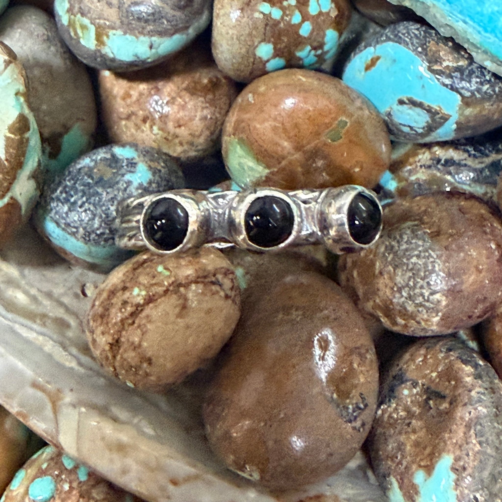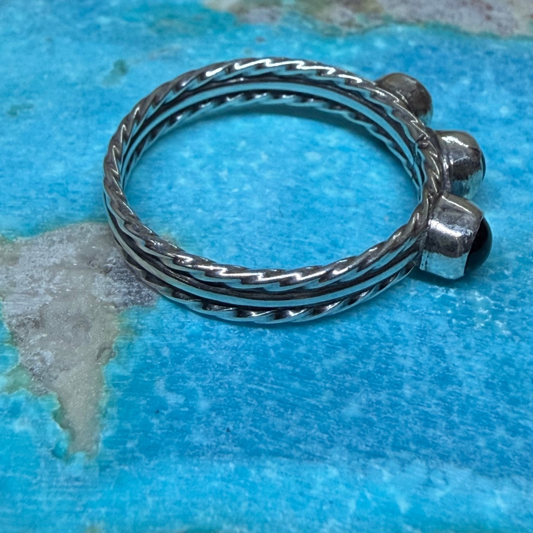 Dainty 3 Stone Black Onyx Detail Band Sterling Silver Ring