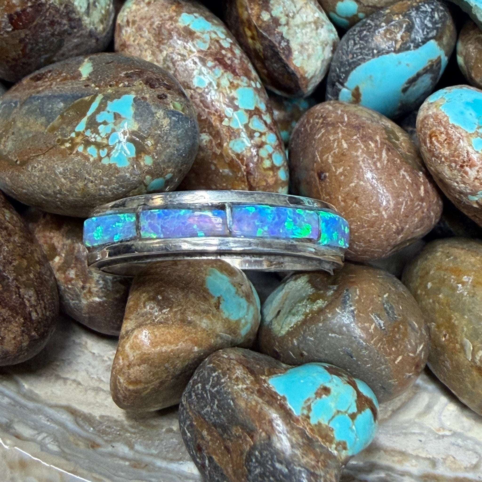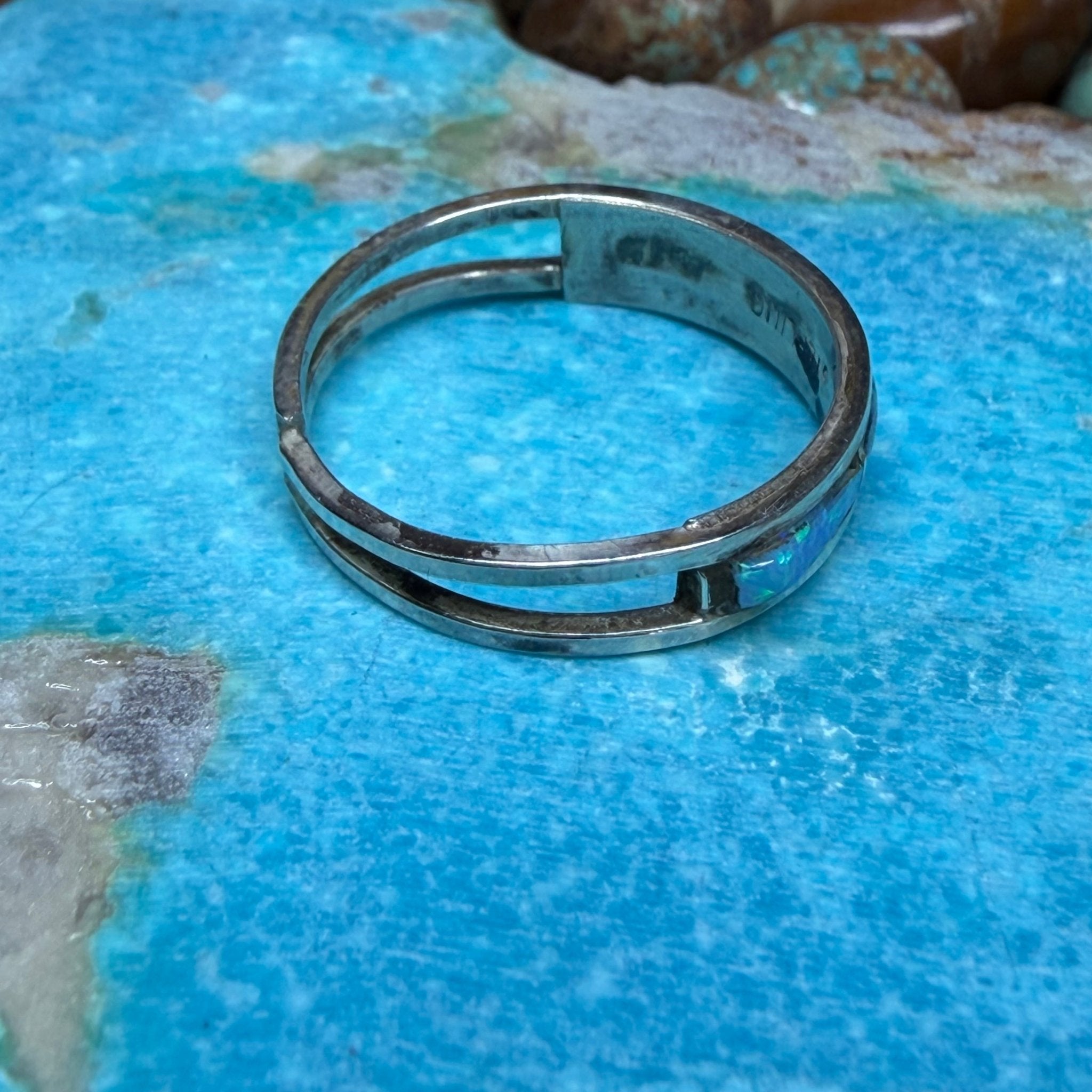Dainty Blue Opal Inlay Sterling Silver Ring