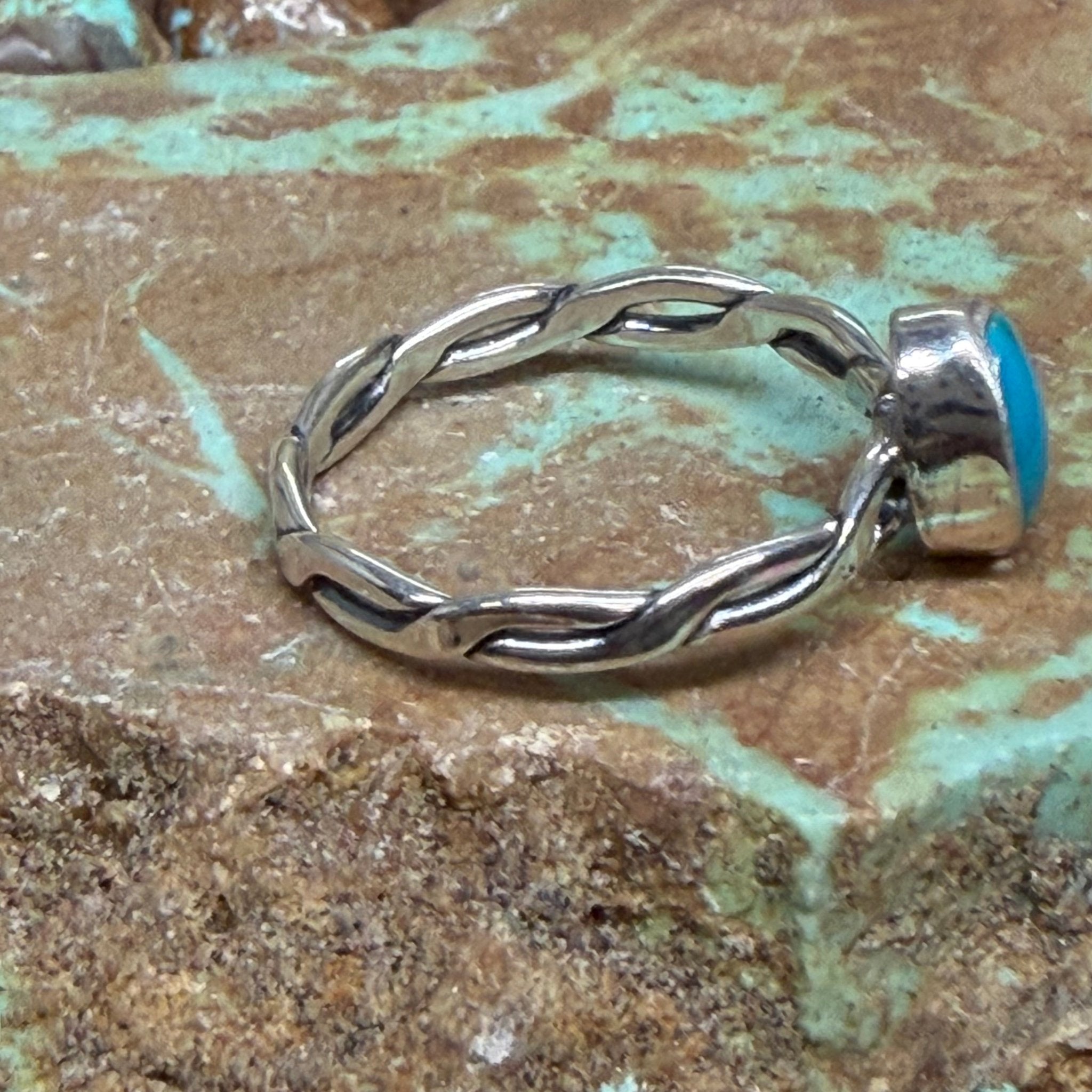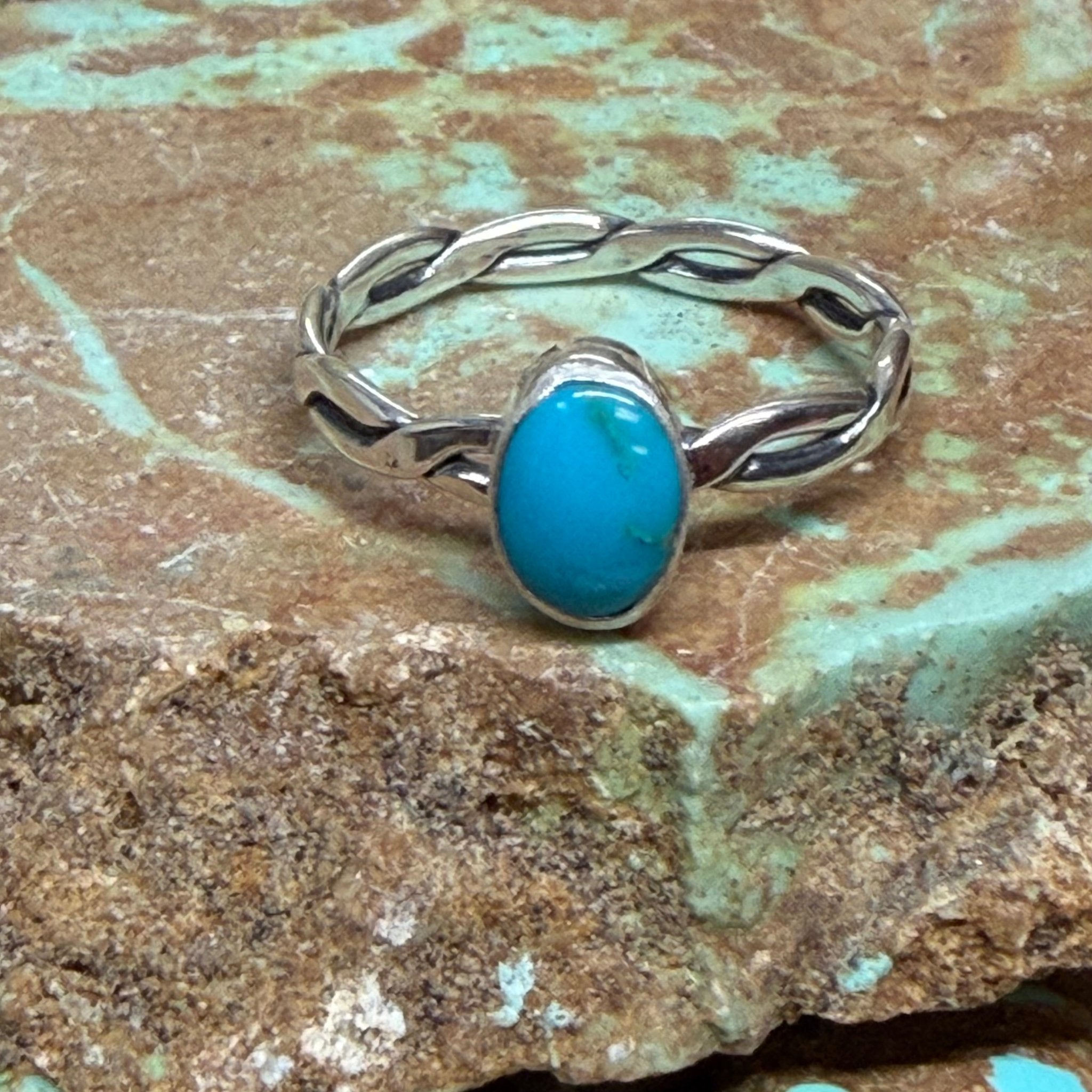 Dainty Oval Blue Turquoise Twisted Band Sterling Silver Ring size 8