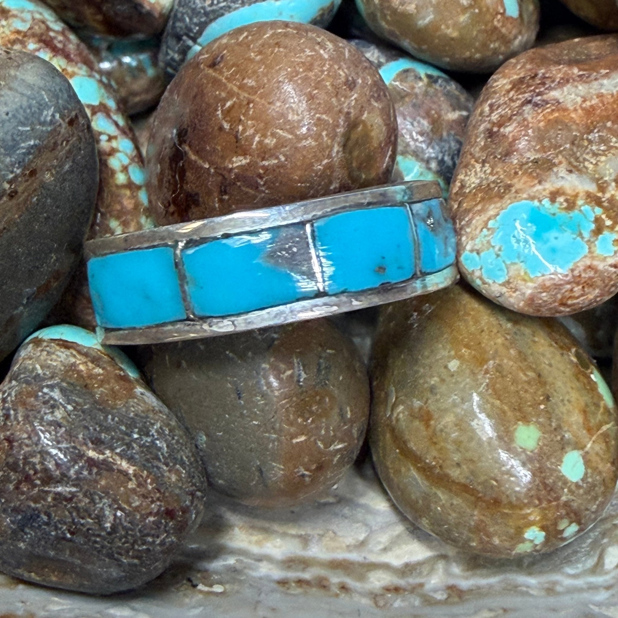 Kingman Turquoise Inlay Sterling Silver Ring size 7