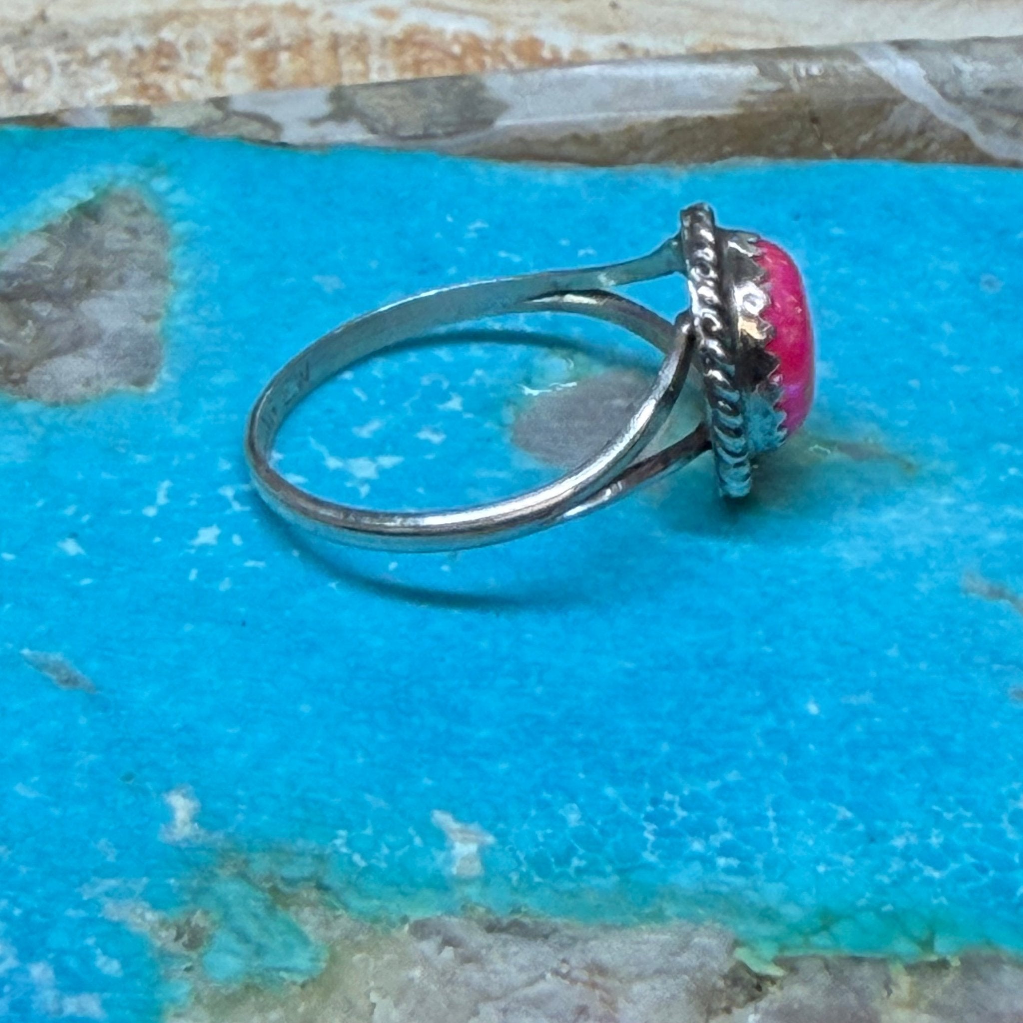 Round Hot Pink Opal with Rope Detail Sterling Silver Ring
